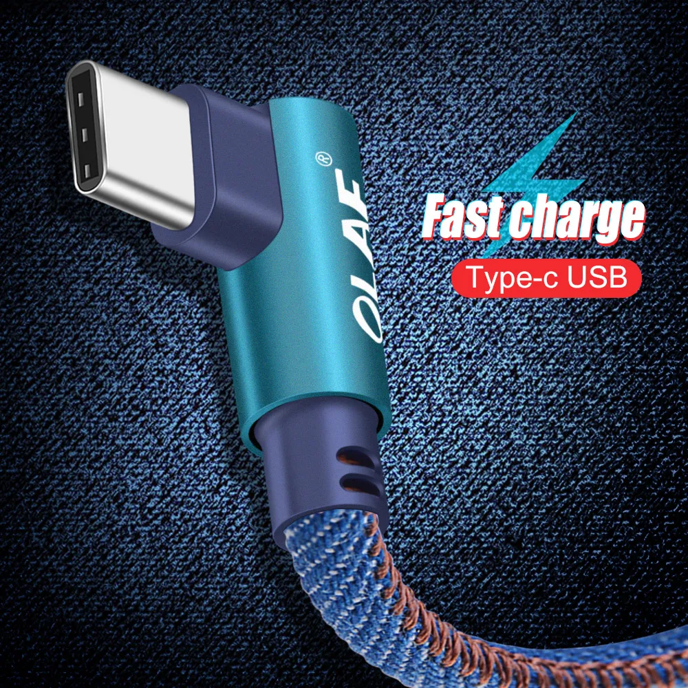 Кабель OLAF 90 градусов USB Type C для Samsung S9 S8 Note 9 8 кабель для быстрой зарядки данных для Xiaomi Mi8 Oneplus 6 6t 5t USB C шнур зарядного устройства