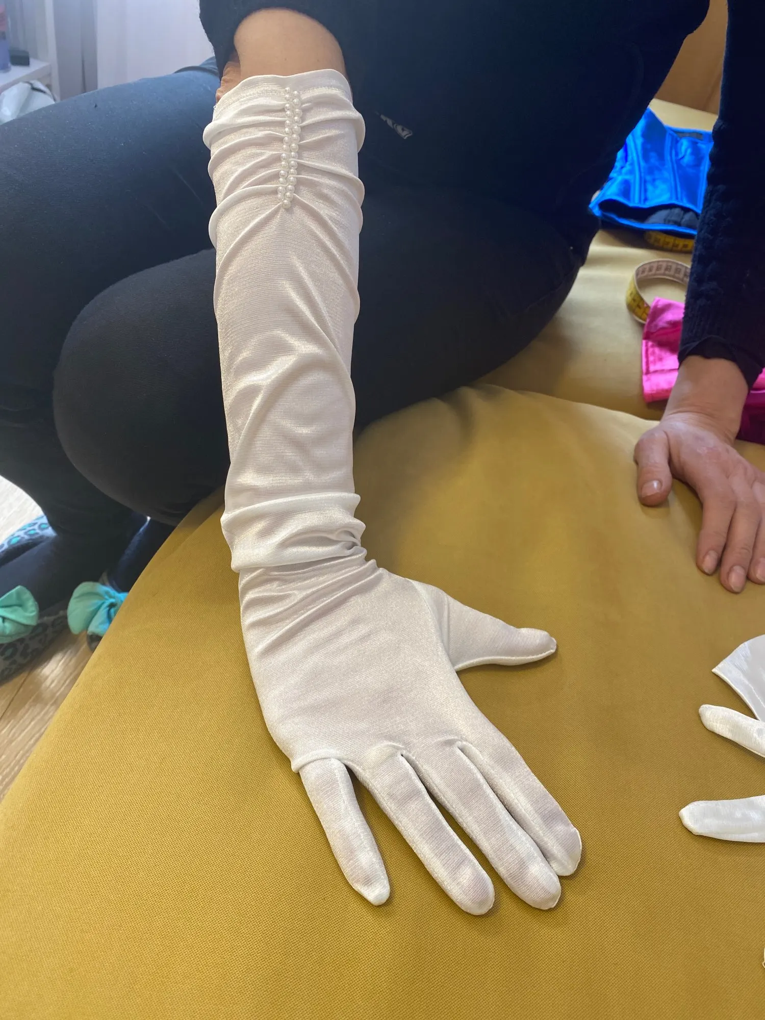 2. Цвет перчаток не совпадает с нашими платьями, есть оттенок цвета. Если вы не можете принять это, пожалуйста, не покупайте его.