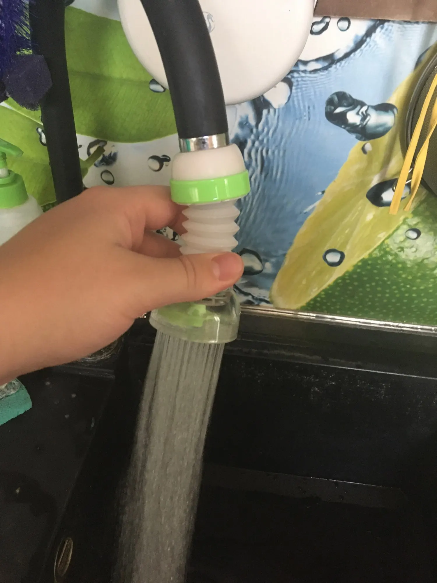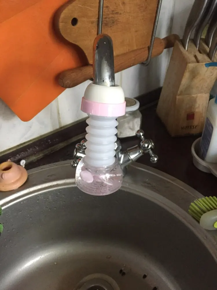 Очень милый и полезный гаджет. Он имеет силиконовый/пластиковый адаптер, который делает его подходящим для любого крана. Единственный низ заключается в том, что он не очень безопасен и легко отпадает, когда я попробовал согнуть трубку во время мытья посуды.
