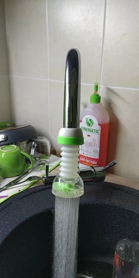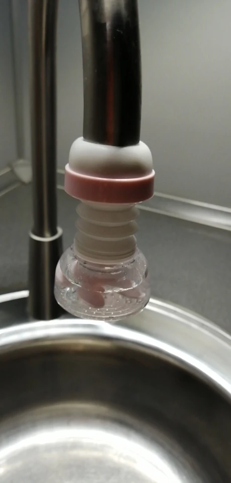 Маленькая, смешная, но очень удобная штука!!! Рекомендую! Верх из плотной резины, отлично сел на кран в офисе. Долго ничего не могла подобрать - не совпадал диаметр. Гофра, при необходимости, удлинняет конструкцию. Пропеллер внутри вообще привел весь коллектив в восторг! Спасибо продавцу! Доставка быстрая.