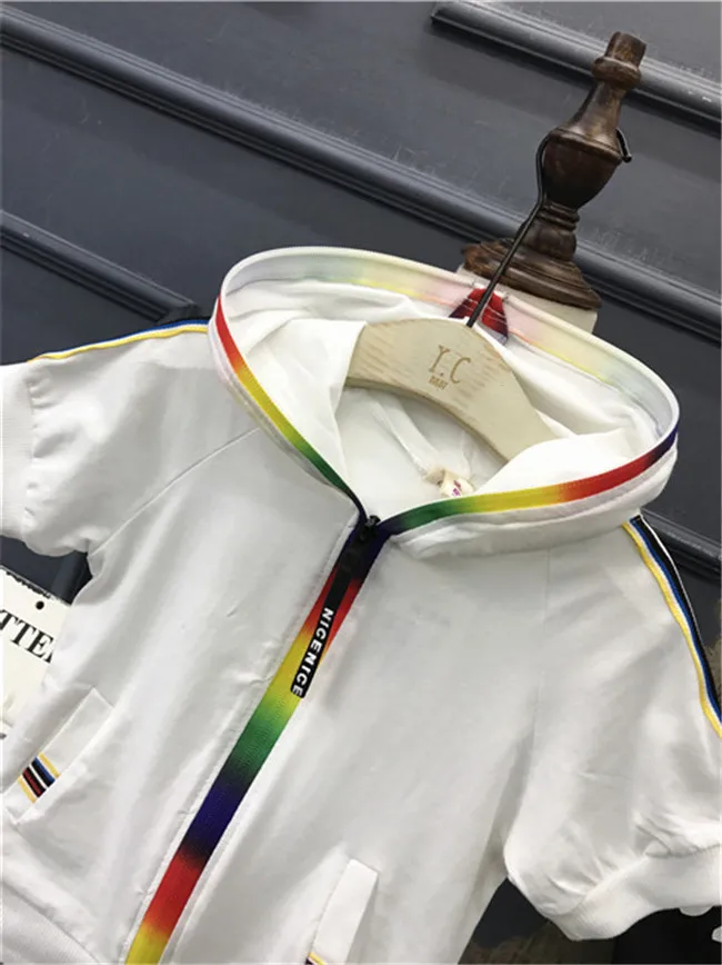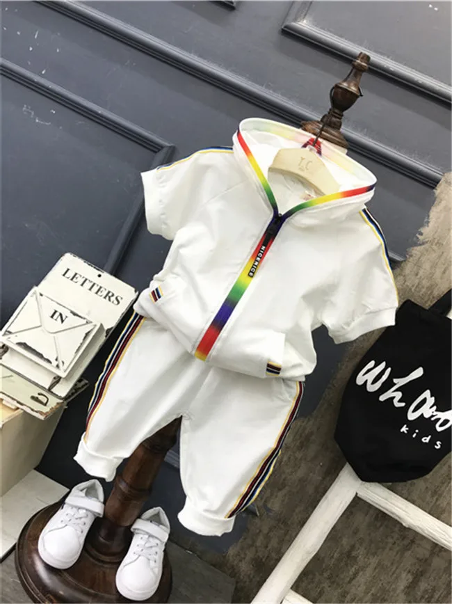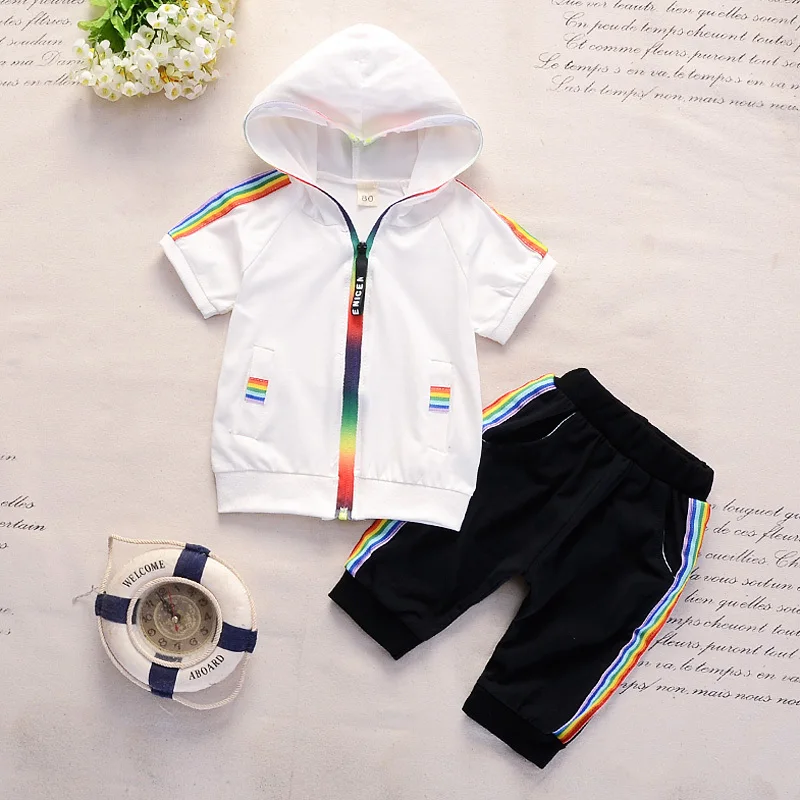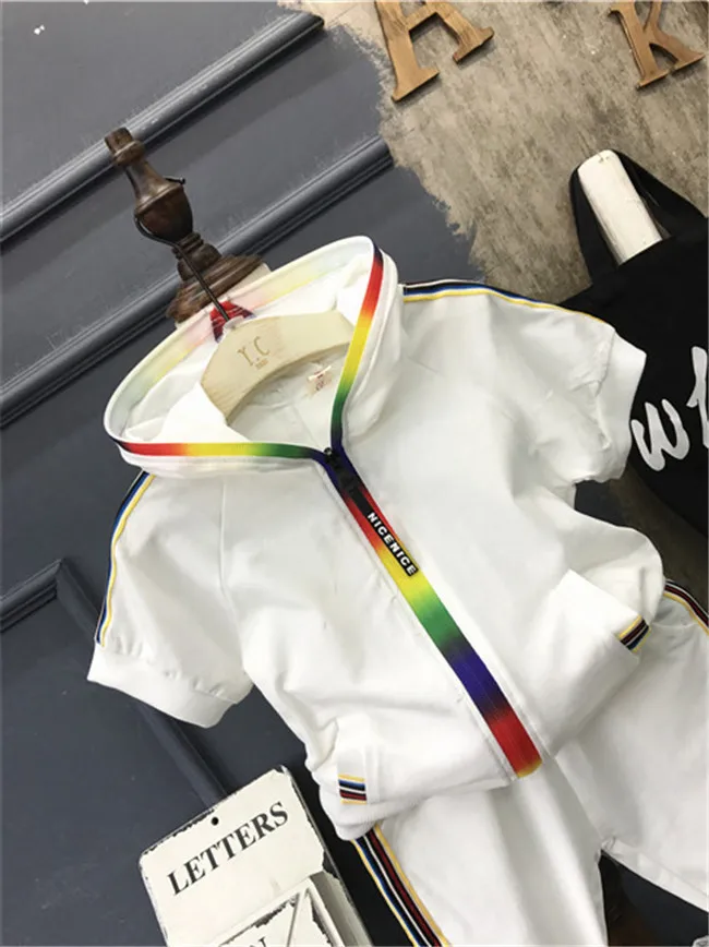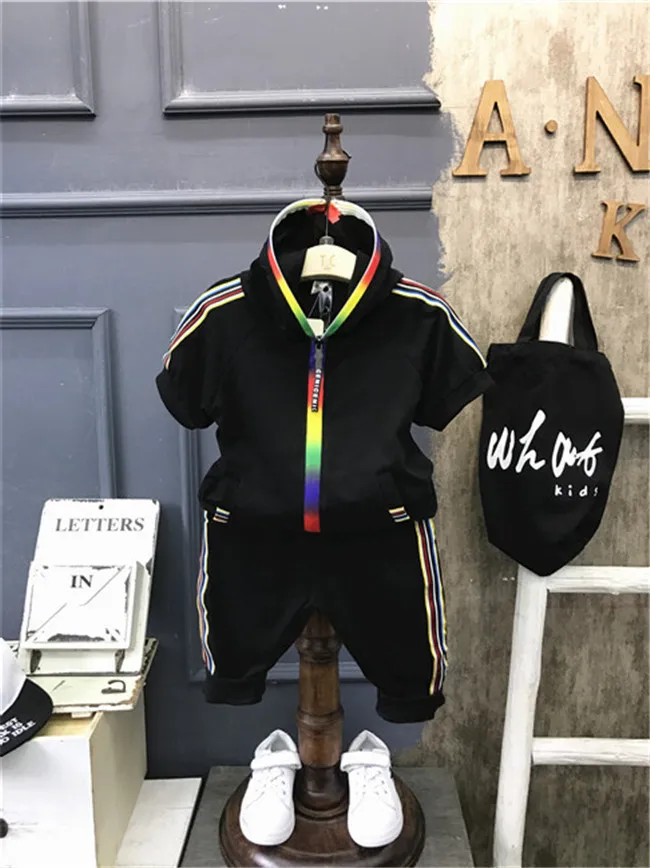 Комплект одежды для мальчиков и девочек, хлопковый, с коротким рукавом, яркий, на молнии, 2 шт.компл.