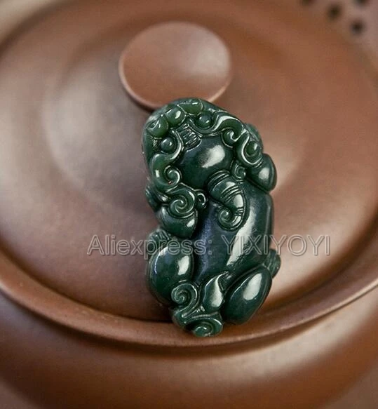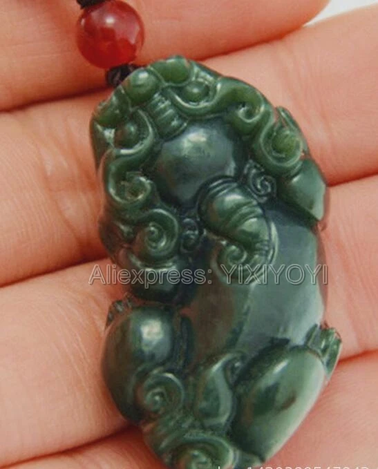 Брелок с нефритовым резным китайским милым амулетом PiXiu + бесплатное ожерелье, ювелирные украшения из драгоценных камней, Красивый природный зеленый