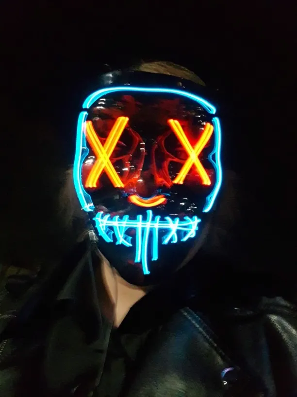 Товар классный! Не ожидается, однако удовлетворяет потребности. Создает потрясающую фигуру, однако это маска с эластичным переключателем для изменения частоты освещения.