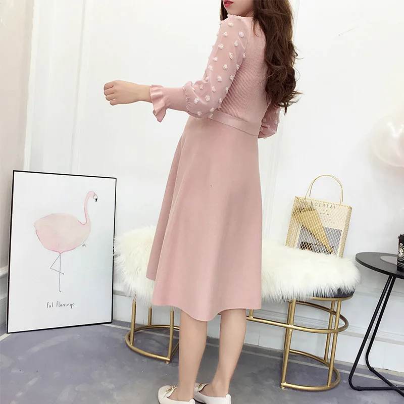 Вязаное платье для беременных нижнее платье для беременных с V-образным вырезом и длинным рукавом Верхняя одежда для беременных женщин платья для беременных