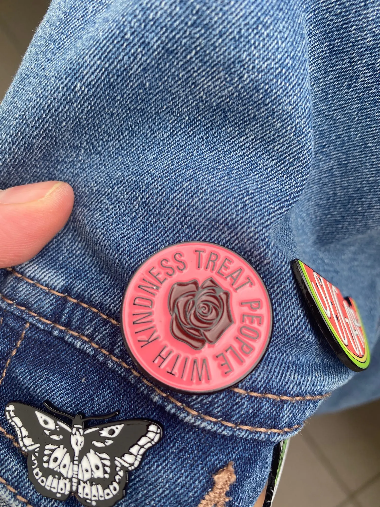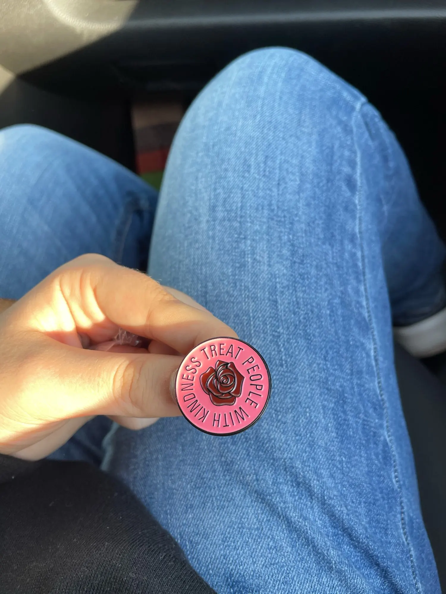 Розовая, красная роза, мягкая эмалевая брошь, относиться к людям с добротой, пуговица, значок для одежды, Ювелирное Украшение в одном направлении, подарок для фанатов
