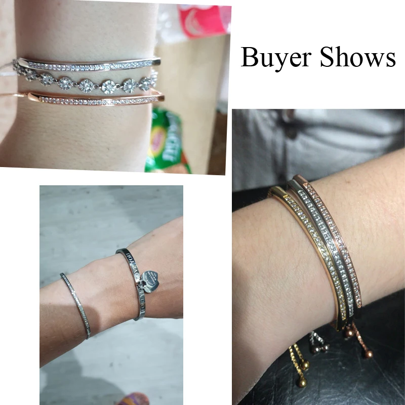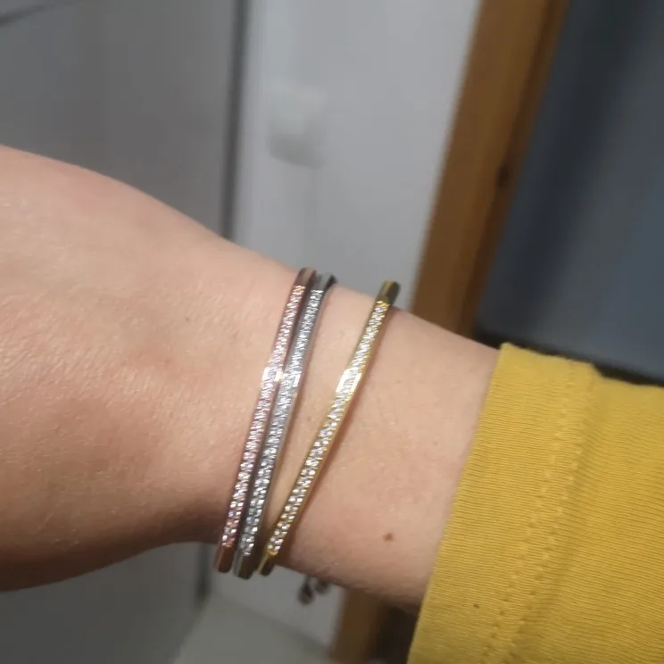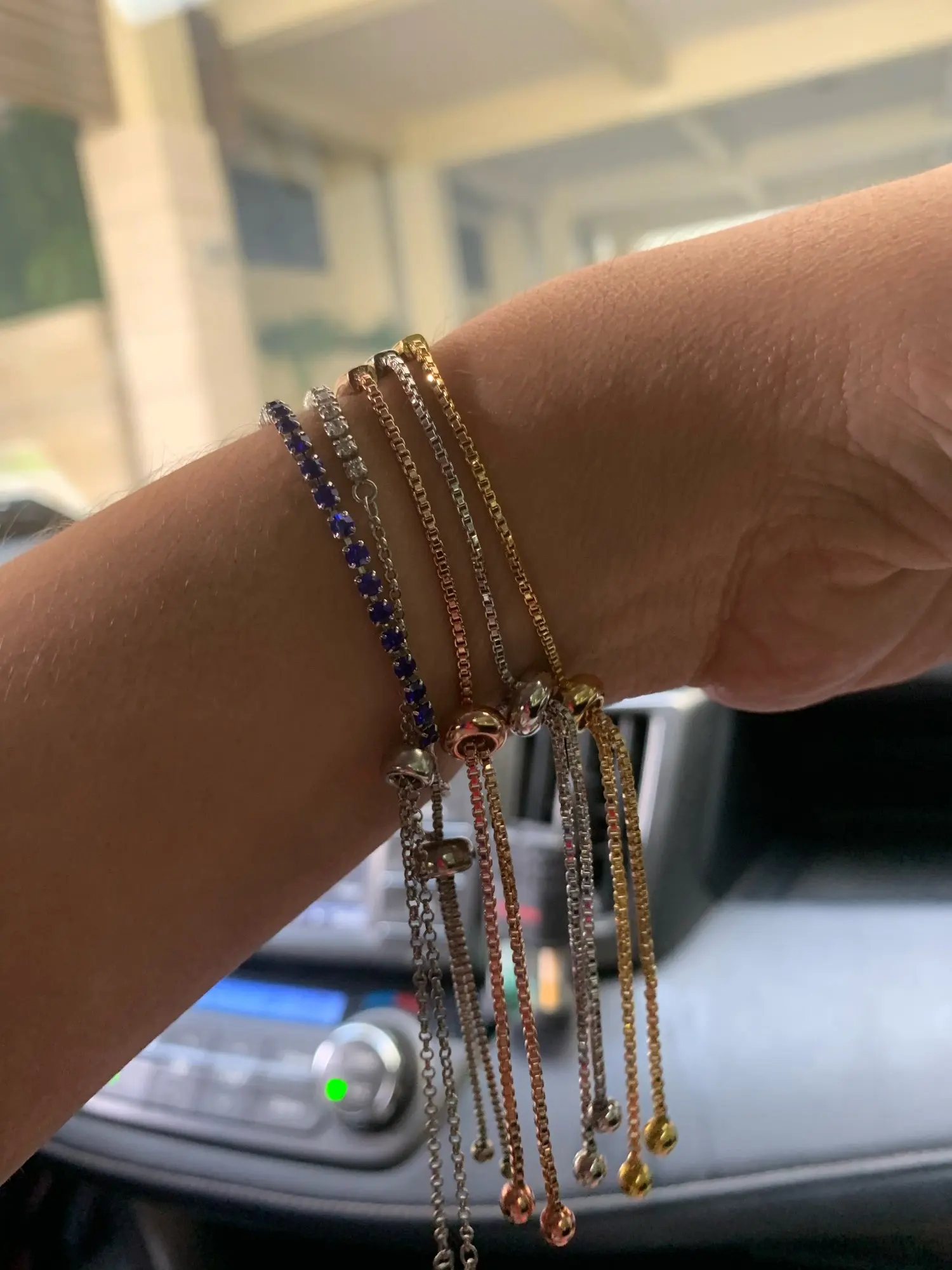 Ordered one of each color and love them! Super cute and sparkly! The tightening mechanism was a little wonky at first but once you get it, it’s totally fine! Would definitely buy again! Great quality (for now lol) hopefully they won’t turn my wrists green later