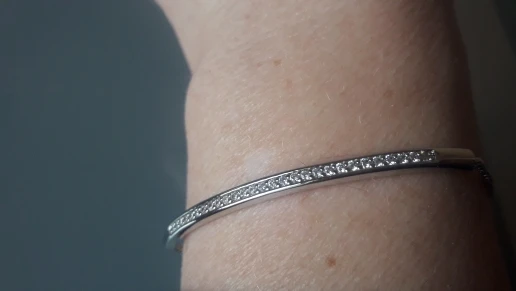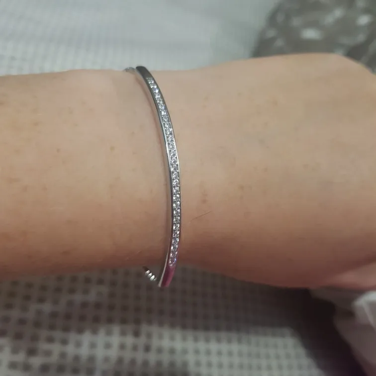 Люблю этот браслет, очень изящный и элегантный. Я немного беспокоился о регулируемой части, но она очень гладкая. Я надеюсь, что этот браслет держится, потому что он красивый. У меня довольно маленькое запястье, поэтому Регулируемая часть отлично подходит для меня. Я загрузил фотографию с бальзамом для губ Nivea, чтобы дать тем, кто подумывает о покупке этого размера. Спасибо продавцу