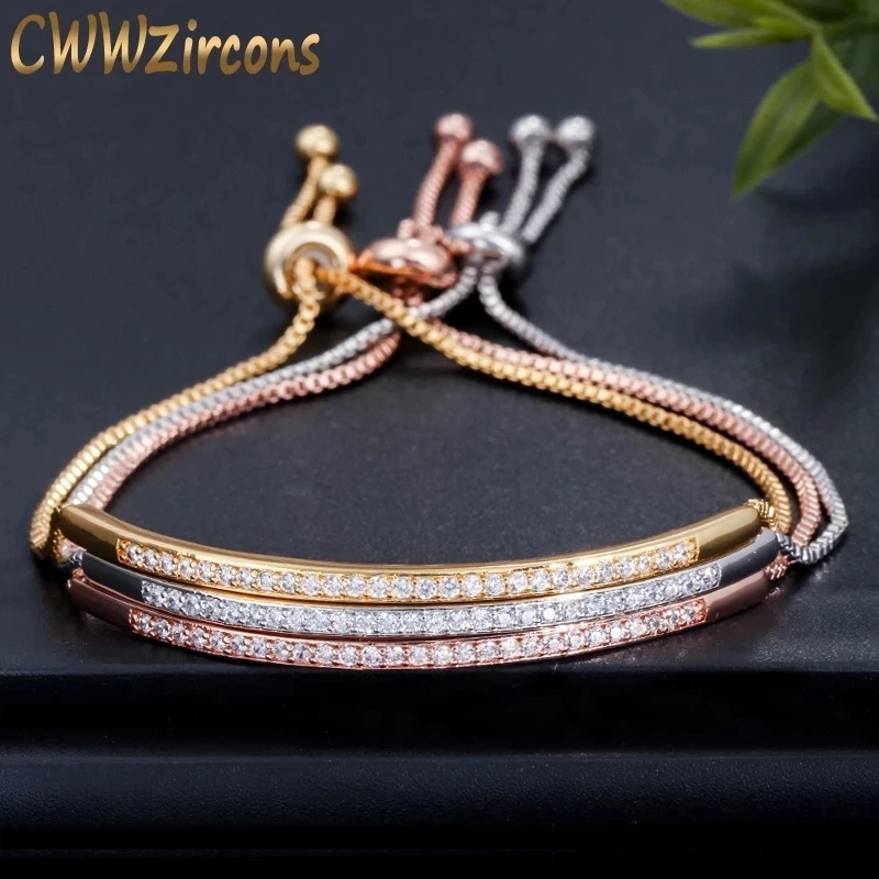 Женский регулируемый браслет на запястье CWWZircons, под розовое золото с фианитами и очаровательным бегунком, CB089