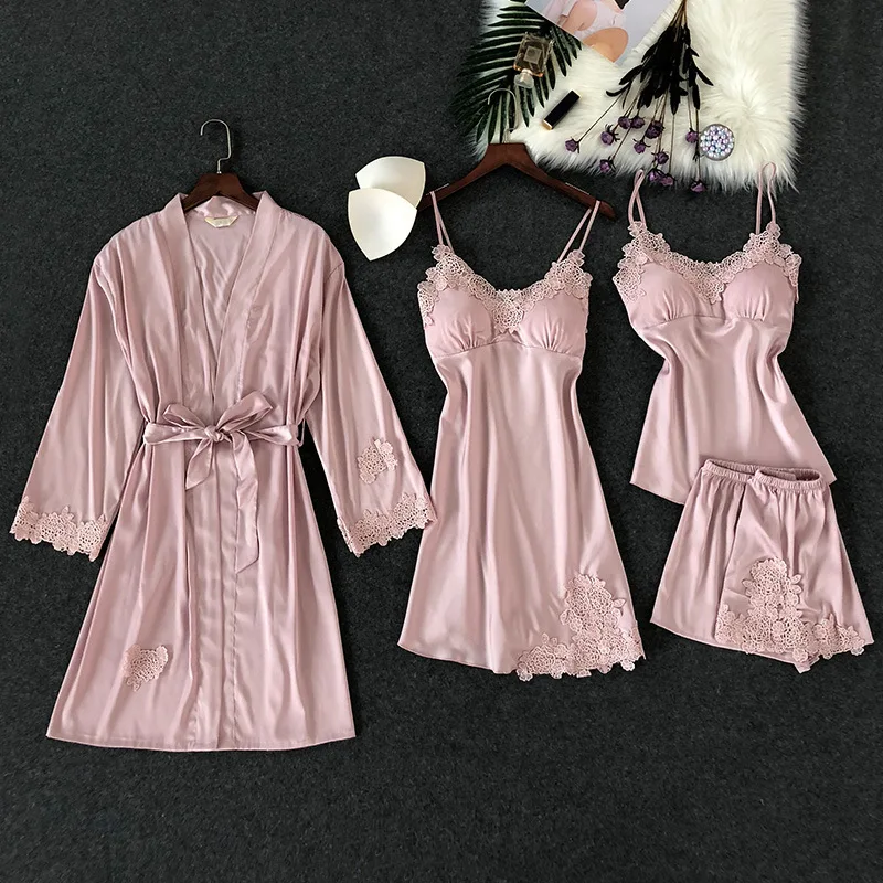 Женский пижамный комплект Lisacmvpnel, из вискозы, с подкладкой, ночная рубашка, кардиган, шорты, кружевная Пижама, 4 шт.