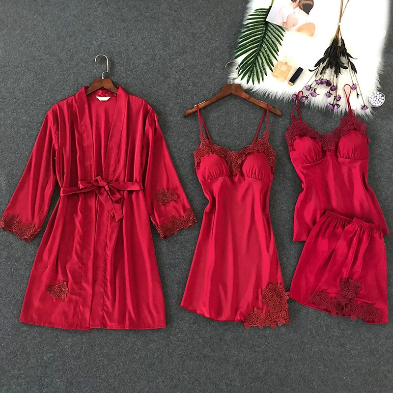 Комплект женский из 4 предметов, кружевной Халат + ночная сорочка, ...