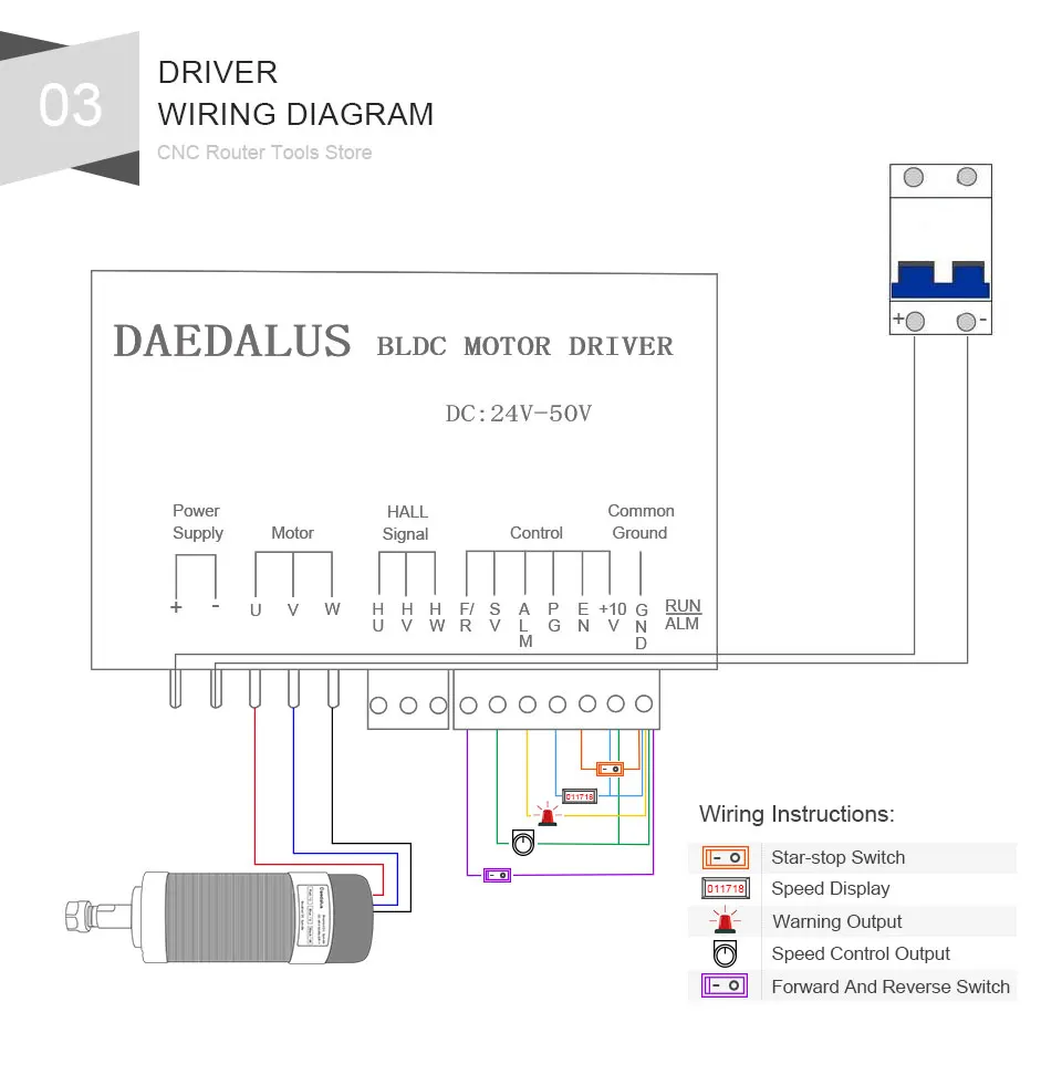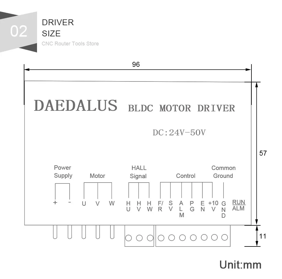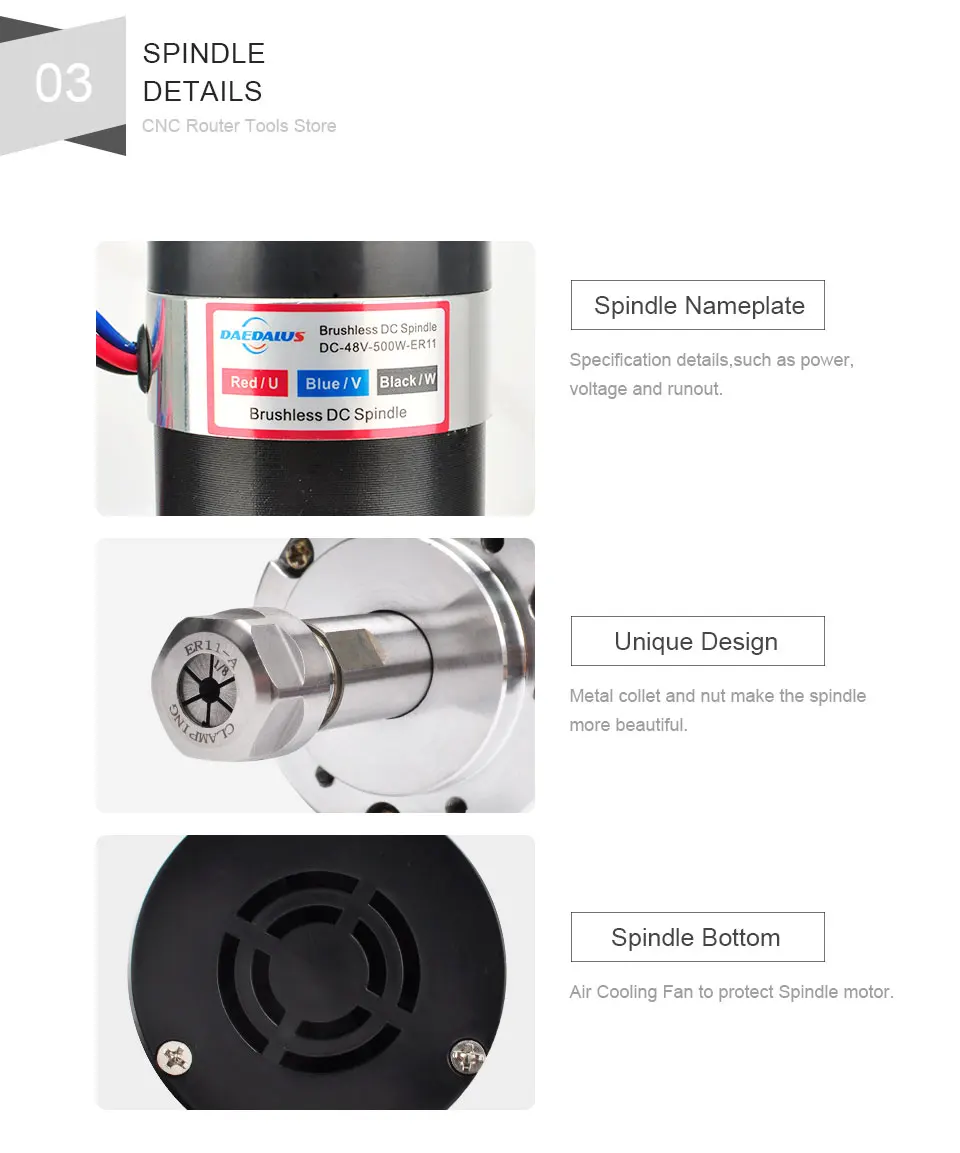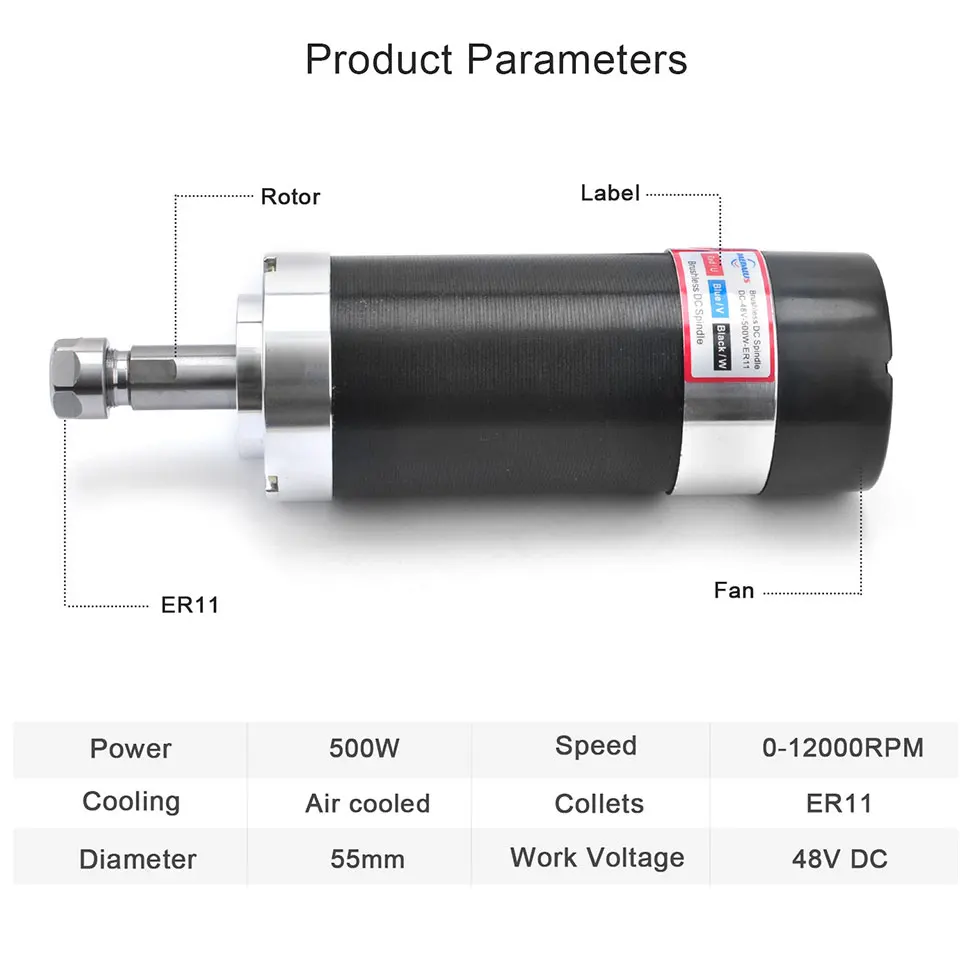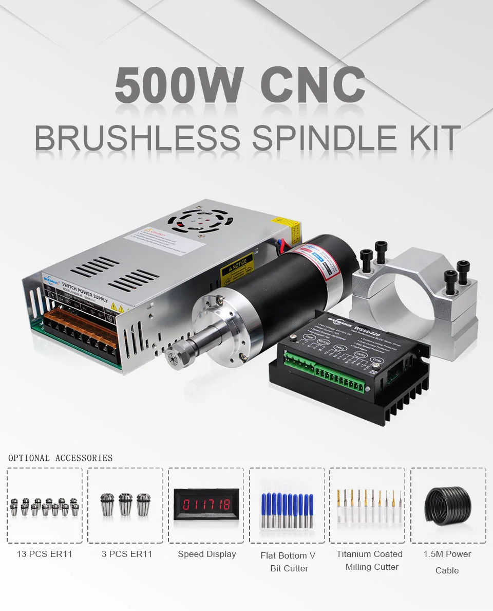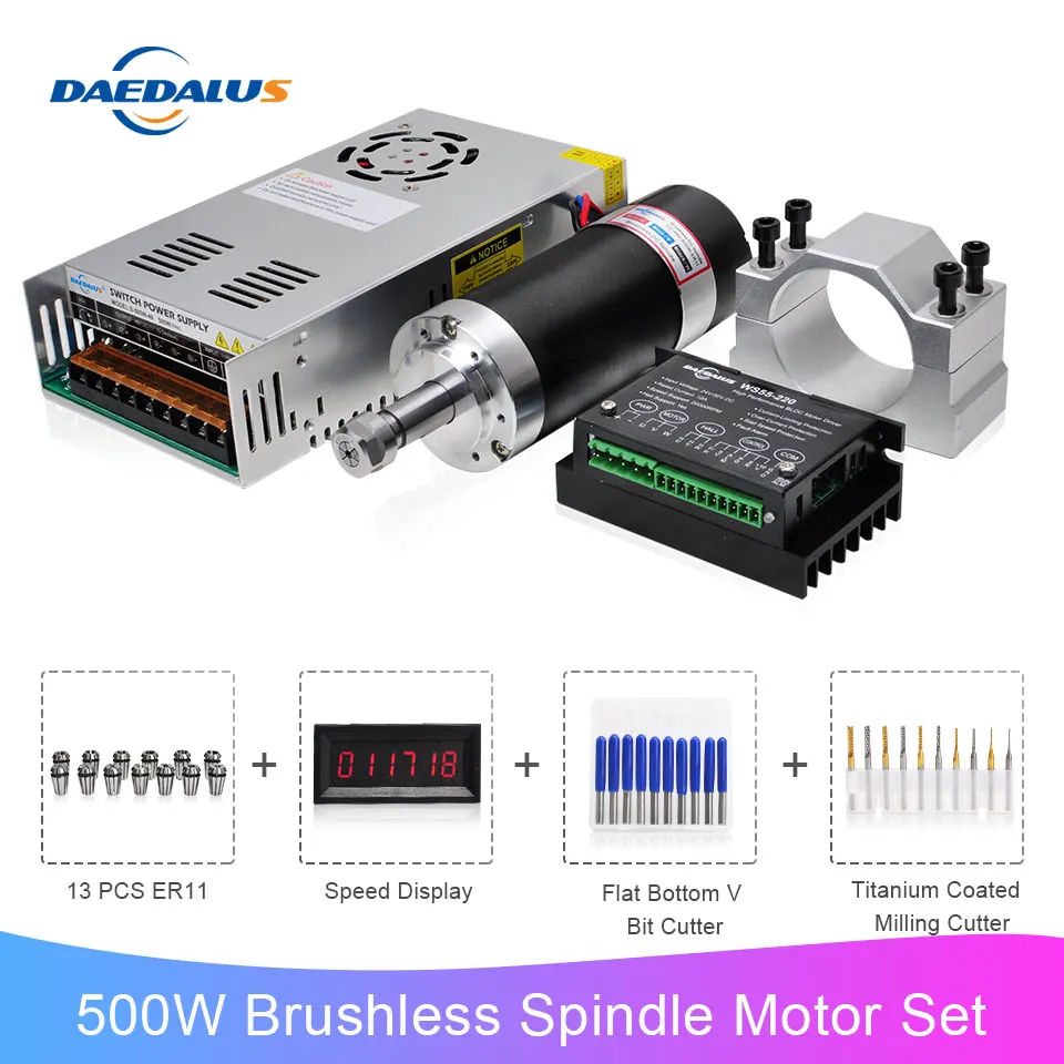 Daedalus 500w Brushless Spindle Motor ER11 DC Motor for CNC Milling with Power Supply Driver 55MM Clamp Bracket ER11 Collets