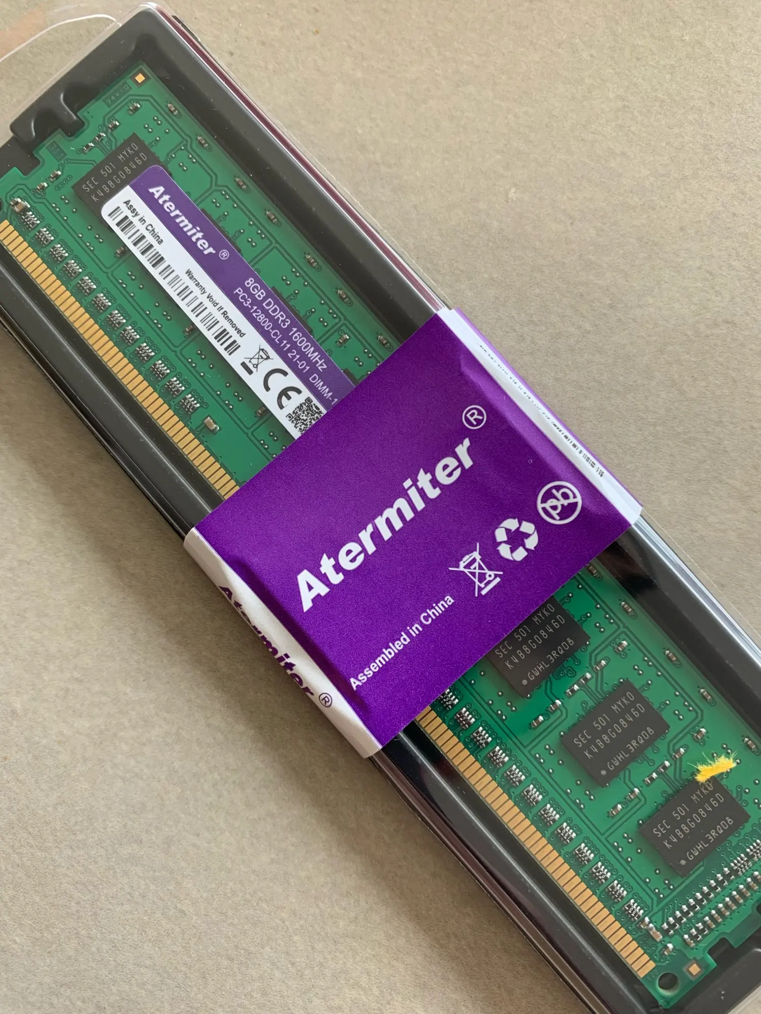Доставлено за 3 недели, это хорошо. Заказал уже третий раз память DDR3-1600-8GB у этого поставщика. Вся память работает без проблем. Первые два раза заказывал по одной планке. Пришли 2-х сторонние планки с 16 чипами Elpida. Третий раз заказал сразу две штуки. Пришли 1-сторонние планки с 8-ю чипами SEC 501 MYKO K4B8G0846D. Типа, это Samsung chips 1G 8 bit 1.35V, хотя на наклейке указаны 1.5V. Работают нормально в паре на Asus B85M-G + Xeon E3-1220 v3 (+G1830) и на Gygabyte B75M-D2V + Xeon E3-1230 v2.