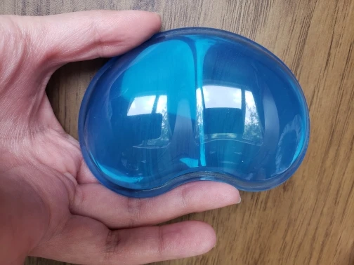Разочарован. Много лет была гелевая подушка отрезанная от ковра, с тканью наверху, служила лет 5, пока не потекла, была больше и толще, не скользила по столу так сильно. Новая же.. маленькая. Реально маленькая. Если поменял немного положение руки и мыши, этой подушки уже не хватает, приходится ее передвигать вместе с рукой. Кстати фиксации на столе из ламинированного ДСП, покрытого лаком, нет совсем. Дальше, область в центре подушки, где углубление, очень легко пробивается пальцем до основания и соответственно, если лежит рука не рахита или хрупкой девушки, она лежит почти на столе, вернее на более жестком основании этой подушки. Есть запах. Не очень резкий, но неприятный, вначале вообще с полметра чувствовался, помыл водой с мылом несколько раз, запах стал чуть меньше, но не исчез. Очень тонкая на вид поверхность «пузыря» сверху. Есть подозрение, что подушка очень быстро потечет, порвавшись. Так же, т.к. она гладкая, уверен, что в жару между рукой и подушкой будет скапливаться пот