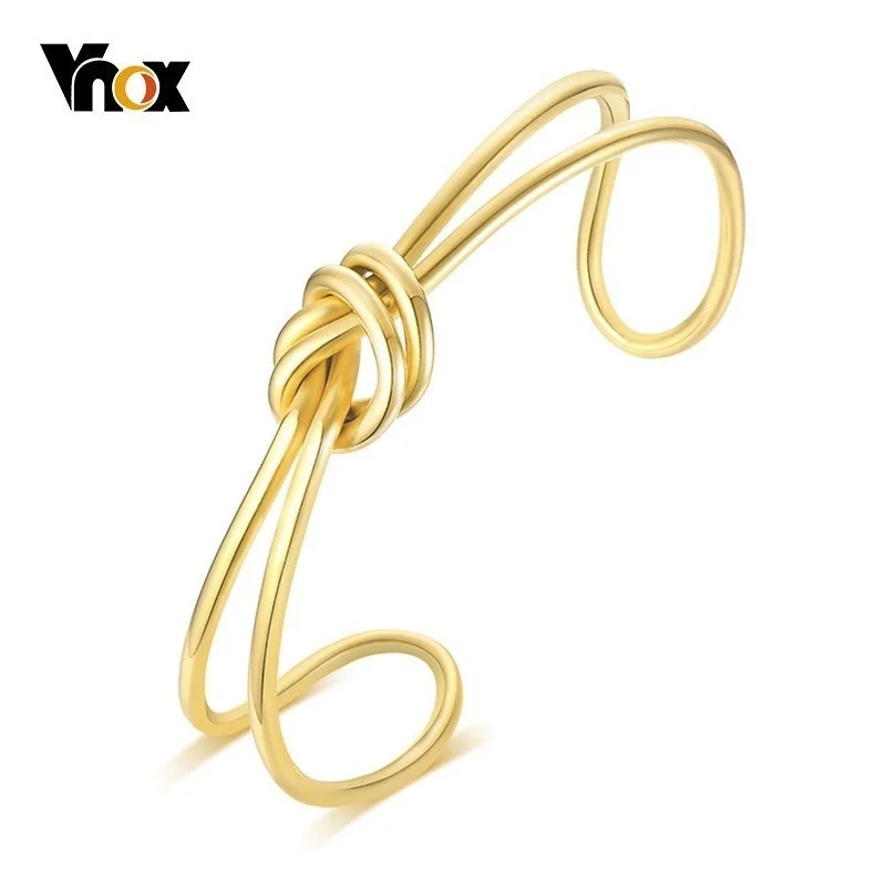 Женский браслет с узлом Vnox Chic, элегантный золотистый браслет из нержавеющей стали, украшение для вечерние и офиса