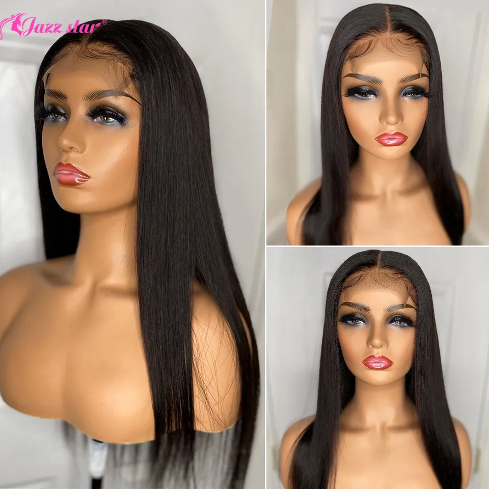 Бразильские волосы 4*4 на шнурке, прямые человеческие волосы, парики для черных женщин, не Реми, джазовая звезда, 150% плотность, парик на шнурке с детскими волосами