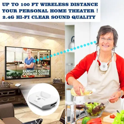 Это 2,4 GHz цифров Беспроводной подбородка гарнитура использует новейшие цифровые Беспроводной технологии, И позволяет улучшить возможности слухового аппарата, которые могут потребоваться пожилым людям, чтобы наслаждаться кристальной стереозвуком и ТВ-звуком в любом месте внутри вашего дома. Просто подключите передатчик к желаемому источнику аудио: dvd-плееру, cd-плееру, телевизору, Hi-Fi системе или iPod. Без сложного подключения и установки система позволяет наслаждаться захватывающим, реалистичным звуком в течение нескольких минут.