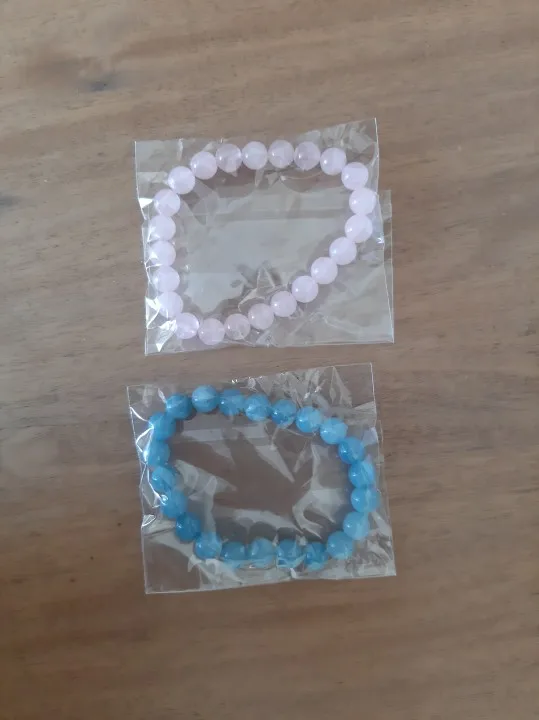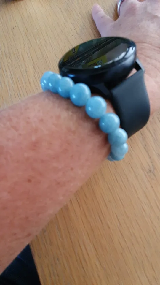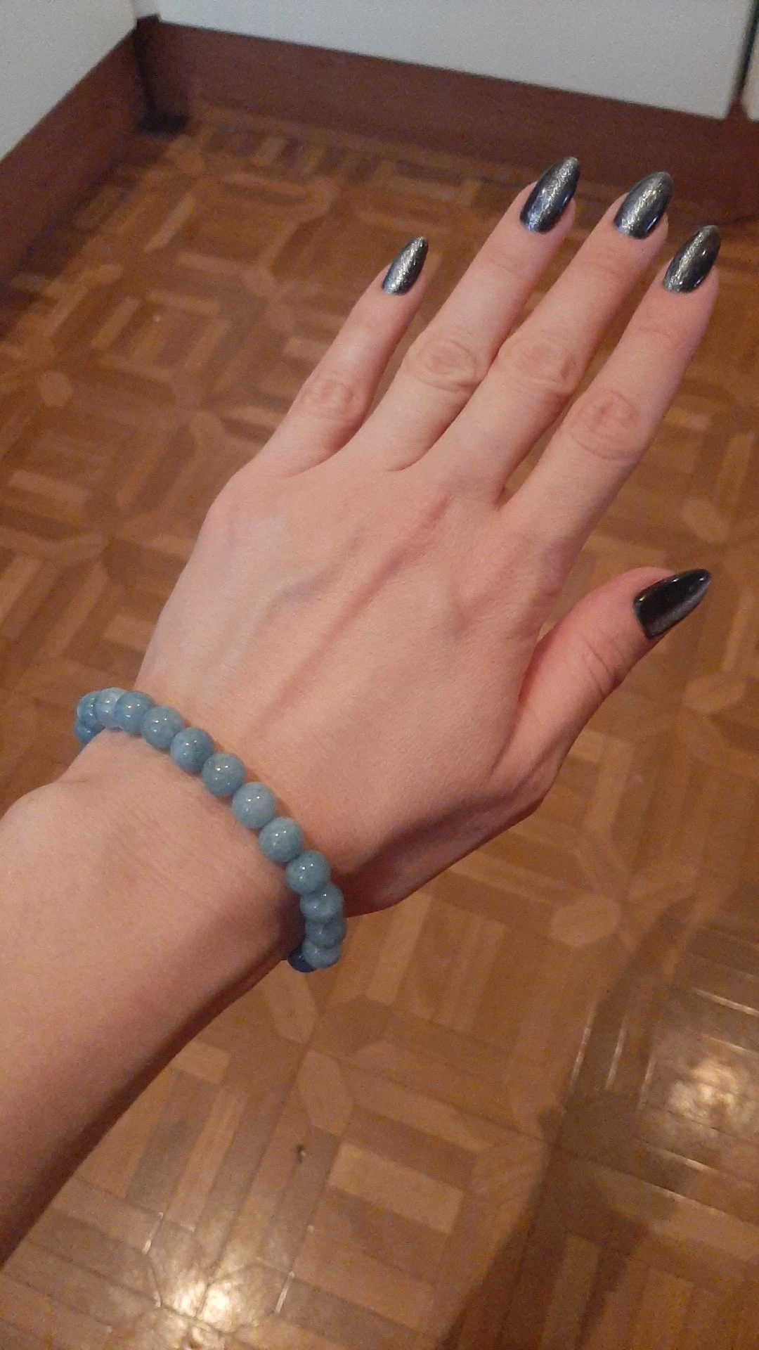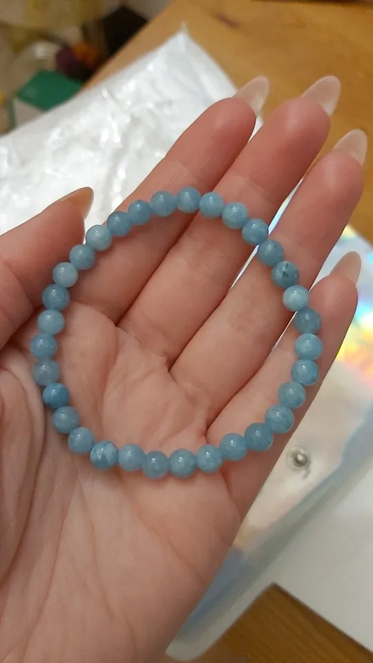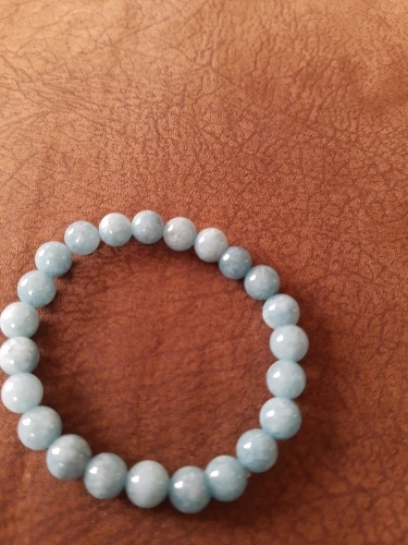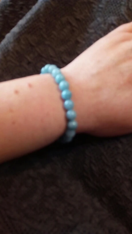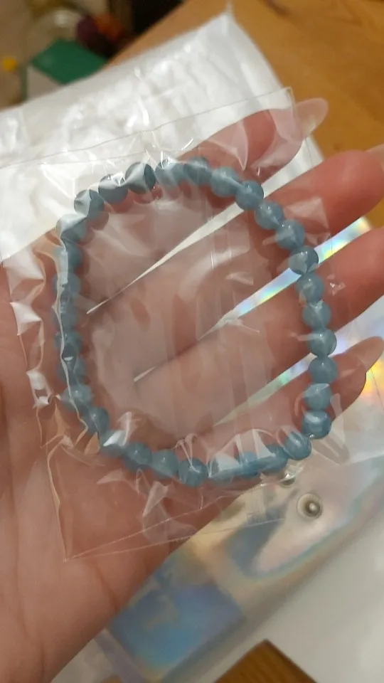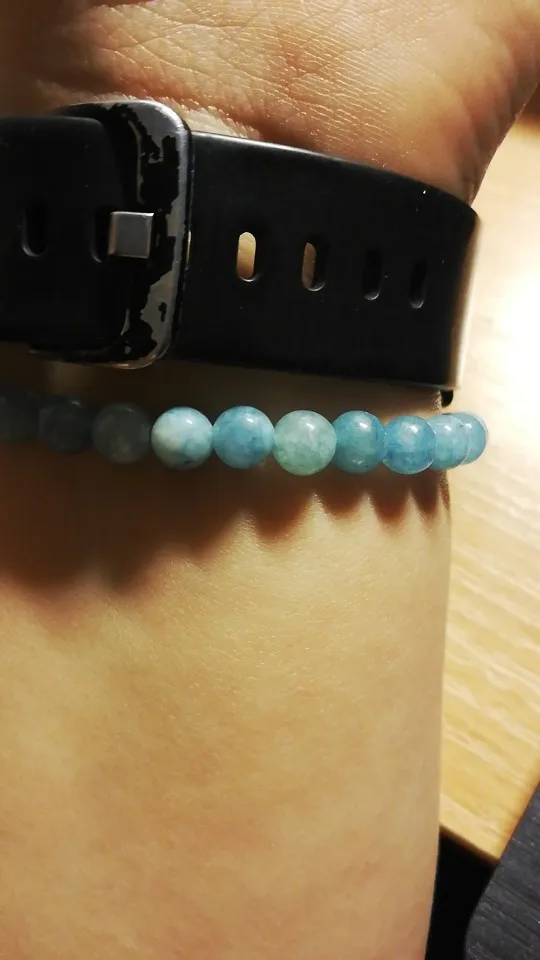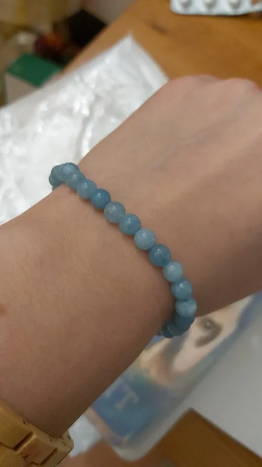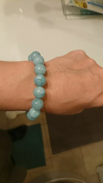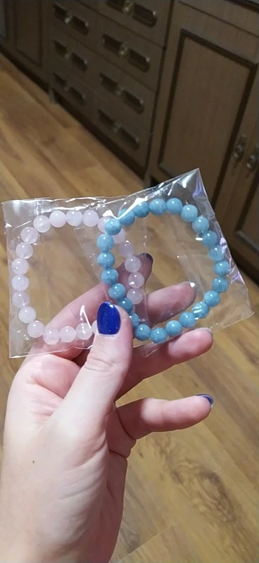 Очень доволен этими браслетами. Размер подходит для маленького человека, который мне нравится. Этот цвет очень изящный и нежный. Я не уверен, что это настоящий браслет аквамарин, но он выглядит отлично, и я думаю, что он стоит своей цены.