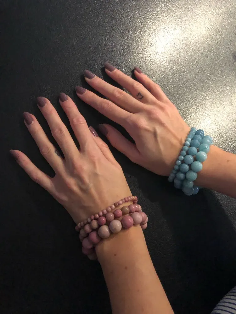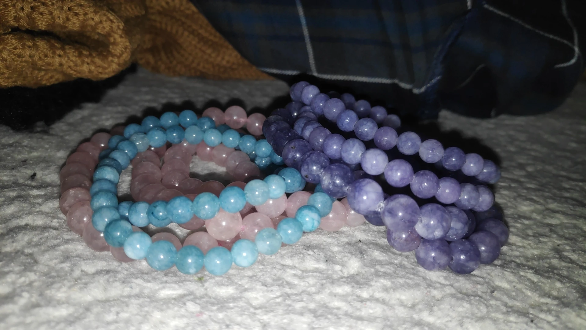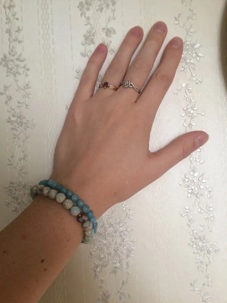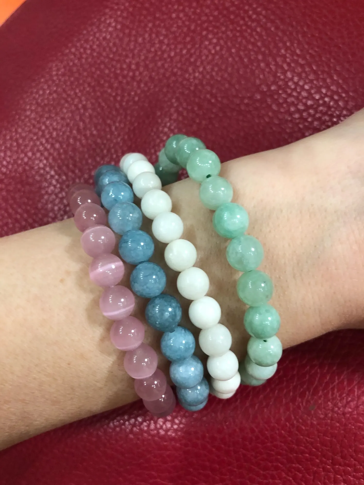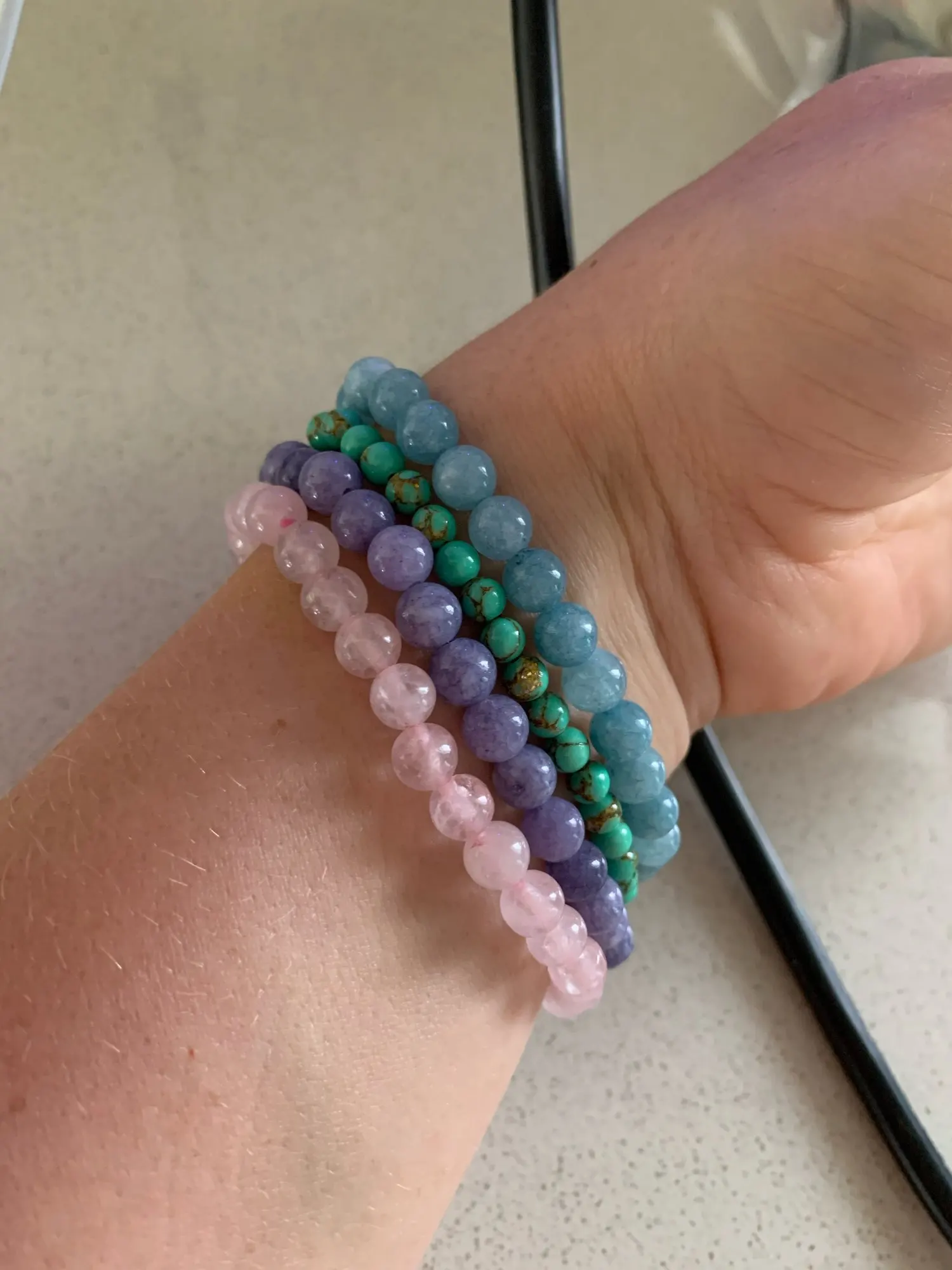 Очень доволен этими браслетами. Размер подходит для маленького человека, который мне нравится. Этот цвет очень изящный и нежный. Я не уверен, что это настоящий браслет аквамарин, но он выглядит отлично, и я думаю, что он стоит своей цены.