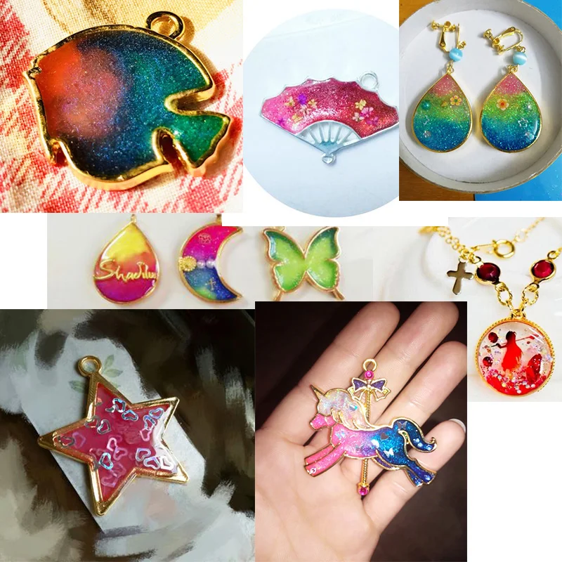 usingMix Key Flower Heart Moon Cabochon Setting UV Resin Charm