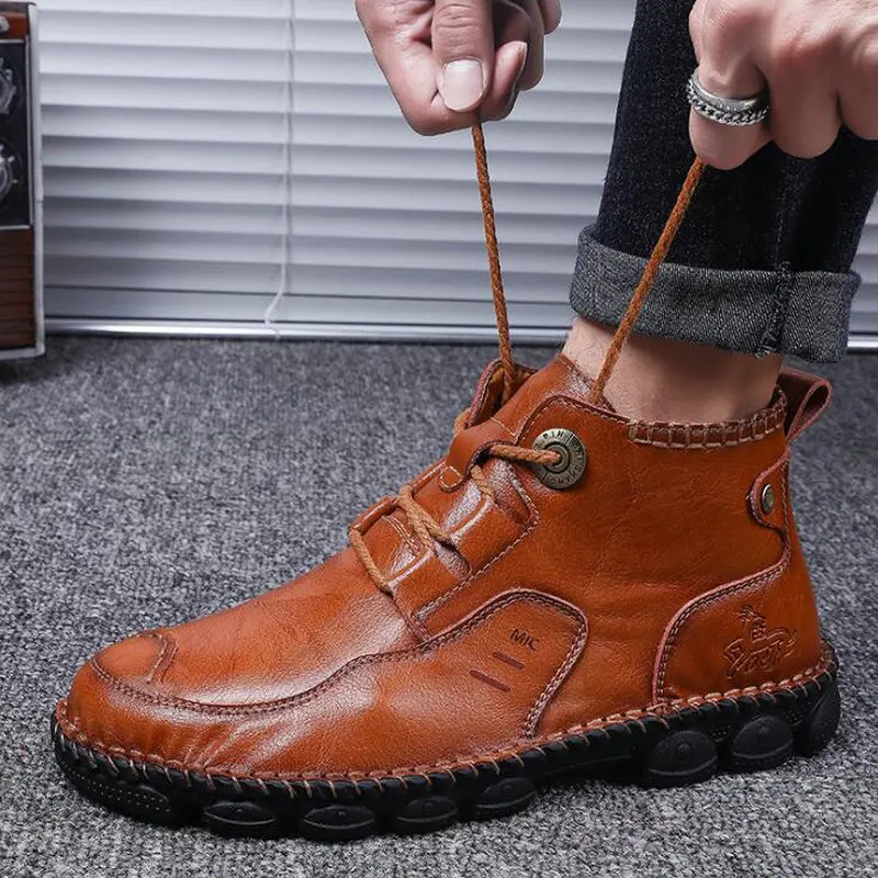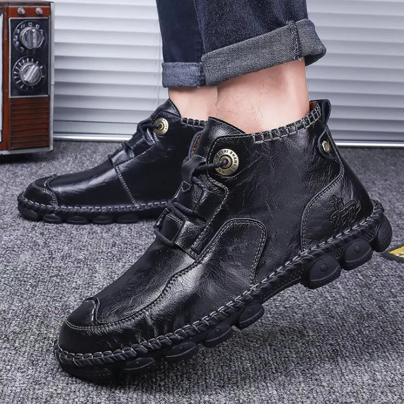 Мужские модные ботинки ручной работы большого размера 48, мужские военные короткие ботинки, зимняя женская нескользящая обувь на шнуровке
