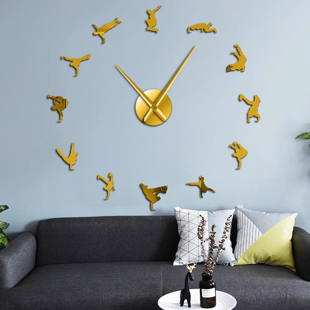 Настенные часы в стиле хип-хоп с зеркальными акриловыми наклейками