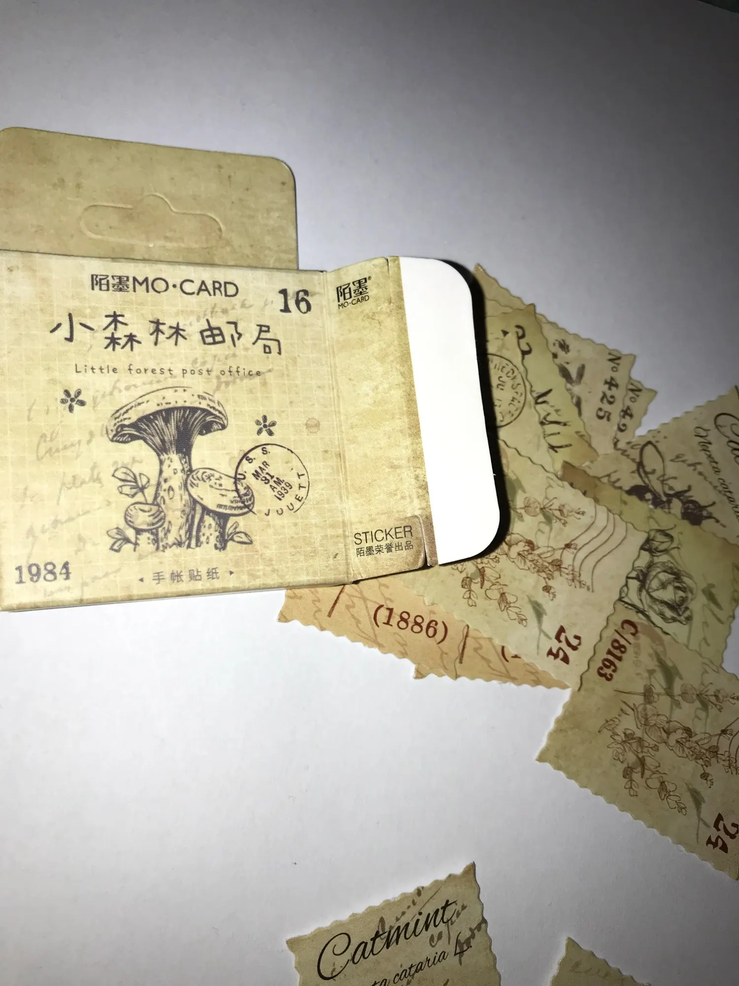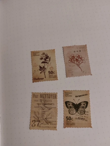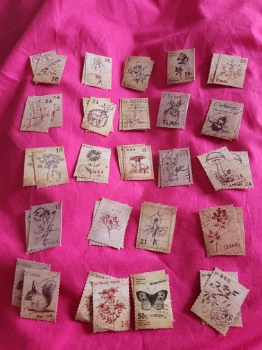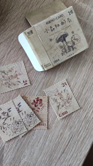 Наклейки выглядят как маленькие винтажные почтовые марки с земляными, волшебными, причудливыми эскизами. Идеально.