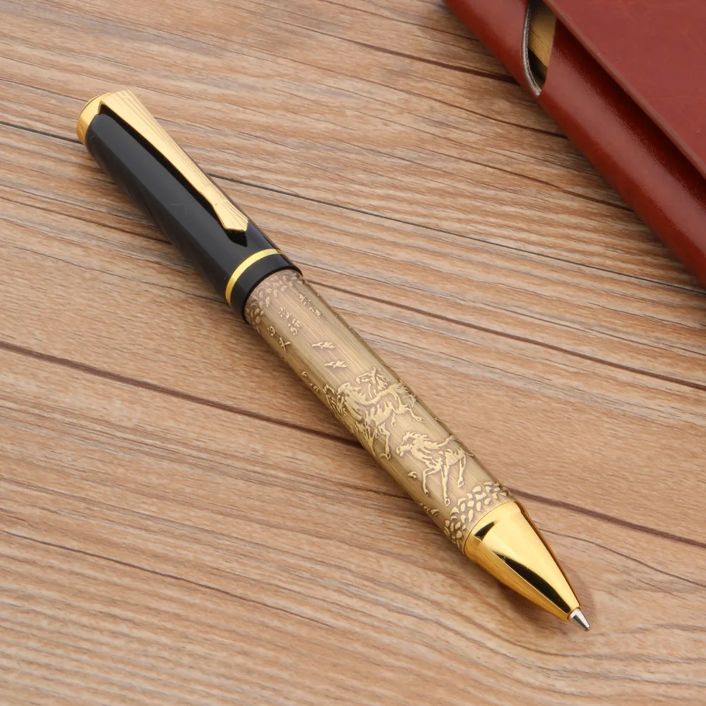 Роскошная BAOER 507 традиционная китайская живопись украшение лошадь Золотая отделка стандартная металлическая Студенческая шариковая ручка