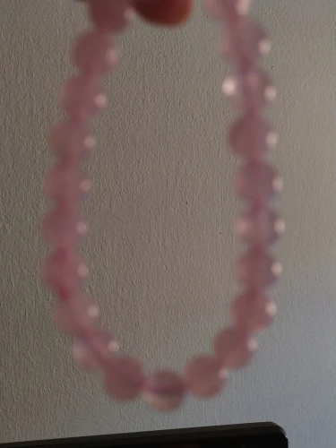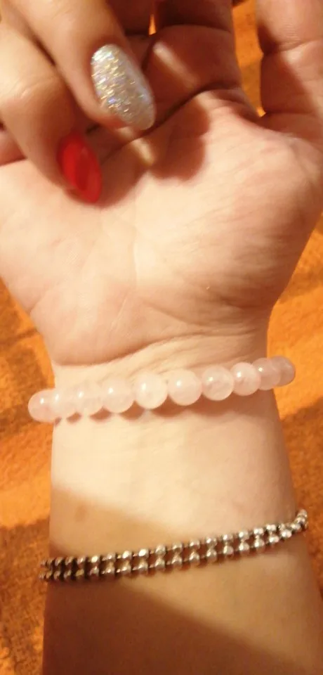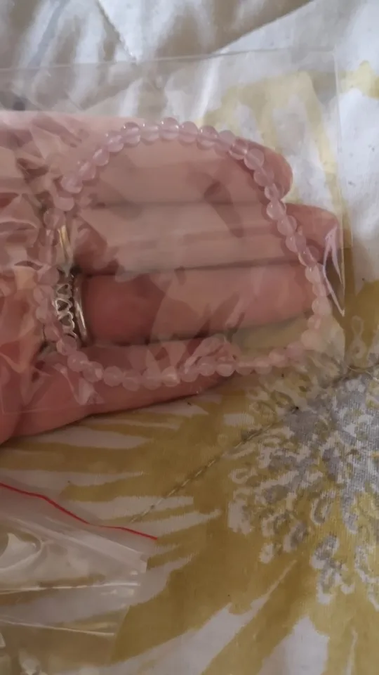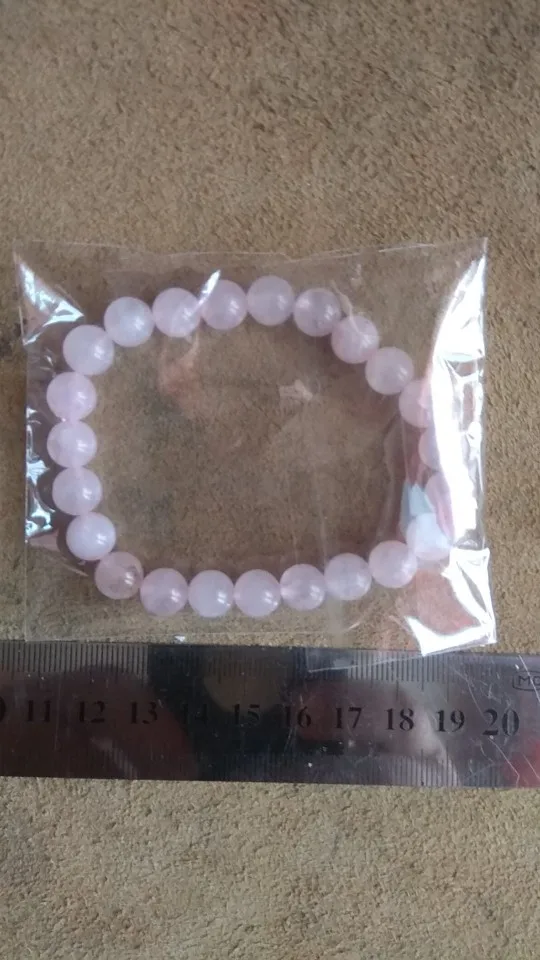 Я не уверен, что это розовый кварц или стекло, но это не пластик, и он выглядит как натуральный камень. На ощупь холодно, а эластичный внешний вид качественный. Очень красивый браслет. Доставка в Испанию занимает около 3 недель. Большое спасибо продавцу.