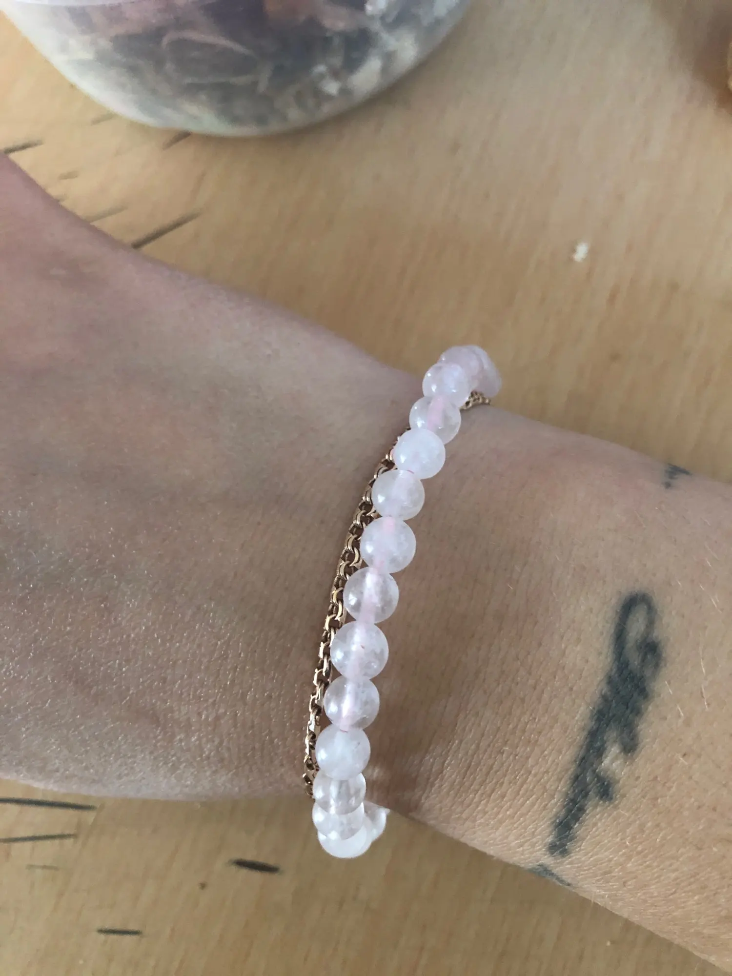 Красивый браслет, похож на розовый кварц.Берите качество хорошее.