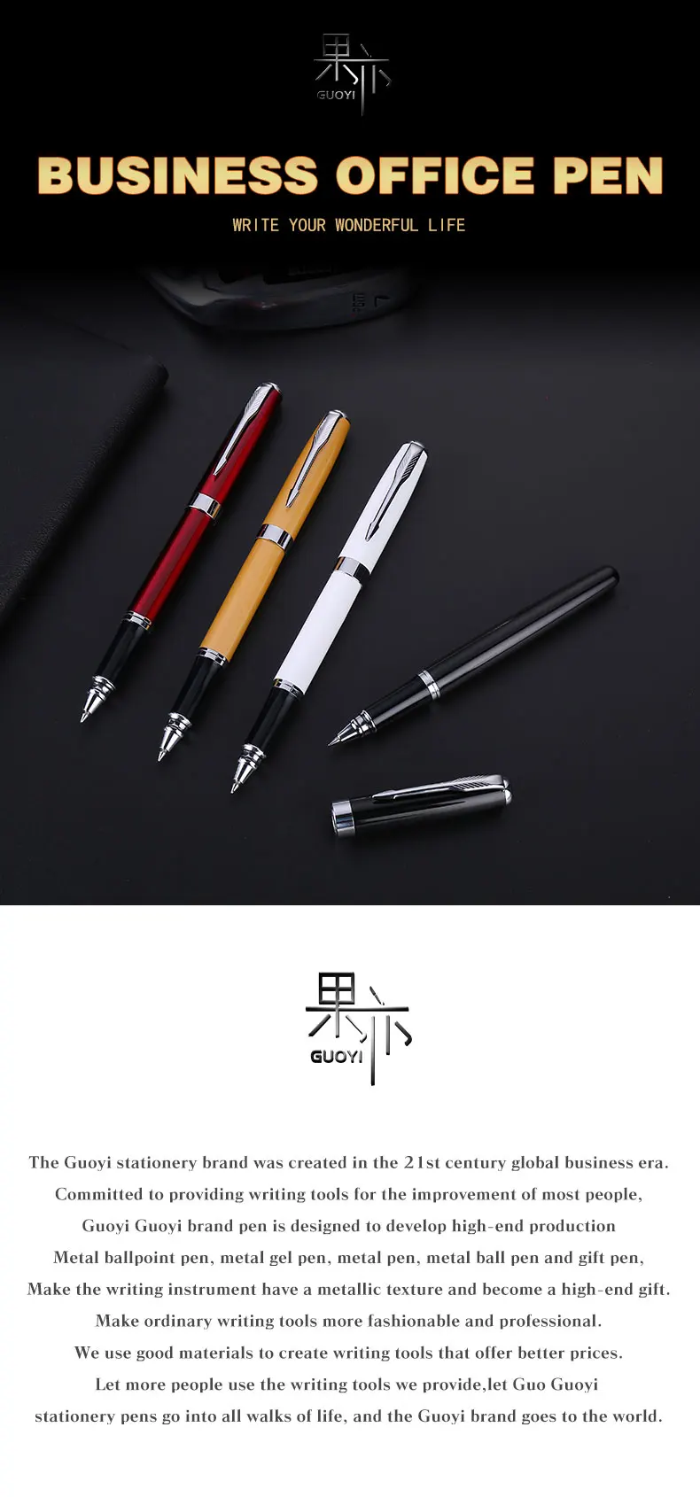 Guoyi A201 класса люкс Eenvoudige Бизнес экзамен металла High-End подарки массовое изготовление на заказ логотип гелевая ручка для подписи журнал леверт
