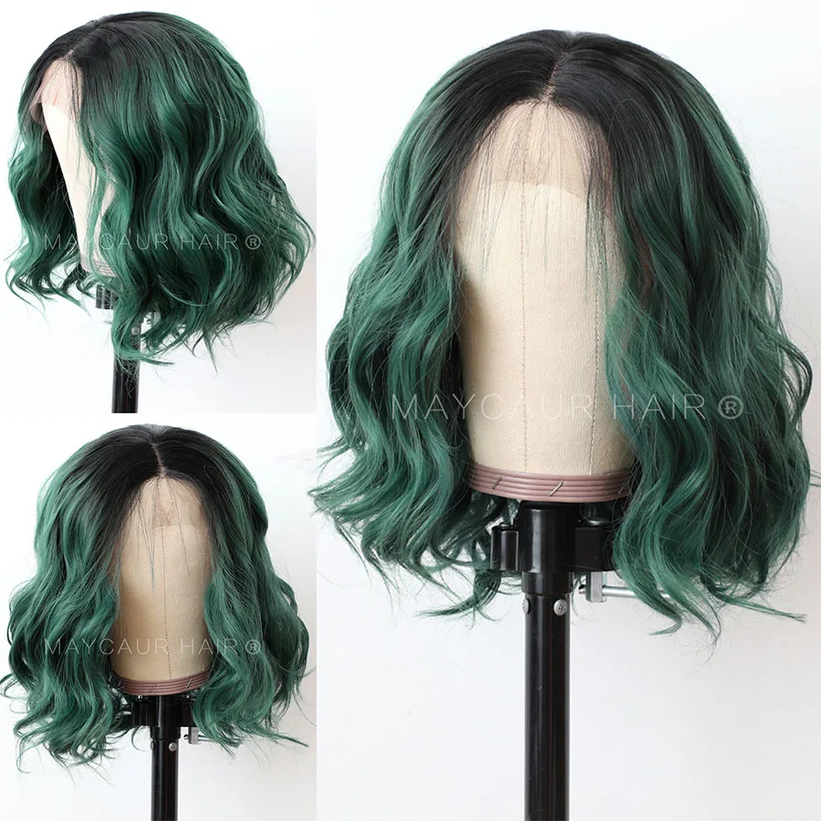 Парики из синтетических волос, 2 оттенка, цвет Омбре, зеленыйсерыйсиний, термостойкие волосы, короткие волнистые волосы для женщин