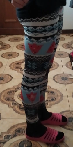 Заказал для жены. Выглядит очень сексуально. На ощупь приятное. На улицу конечно в таких приличная девушка не пойдёт, но дома- это просто сказка. Булочки вкусно переваливаются при ходьбе. Жирным не рекомендую. Узор горизонтальный- ещё жирнее будете выглядеть