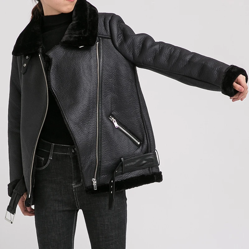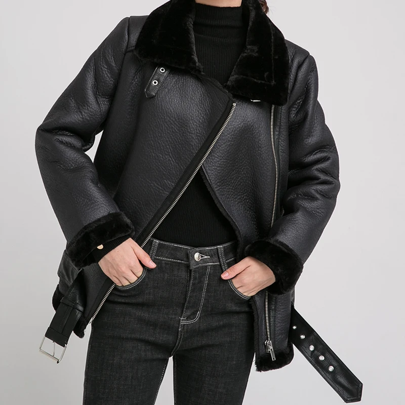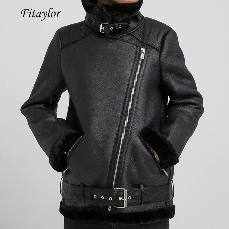 FitaylorЖенская куртка из искусственной овечьей кожи; Зимняя теплая Толстая куртка из искусственной кожи; Куртка из овечьей шерсти с меховым воротником; Женская Свободная верхняя одежда