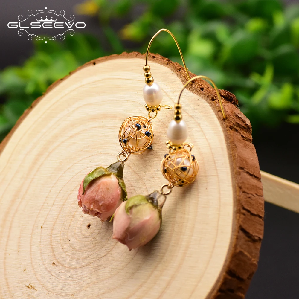 Женские серьги-подвески с натуральным пресноводным жемчугом в стиле барокко GLSEEVO GE0492