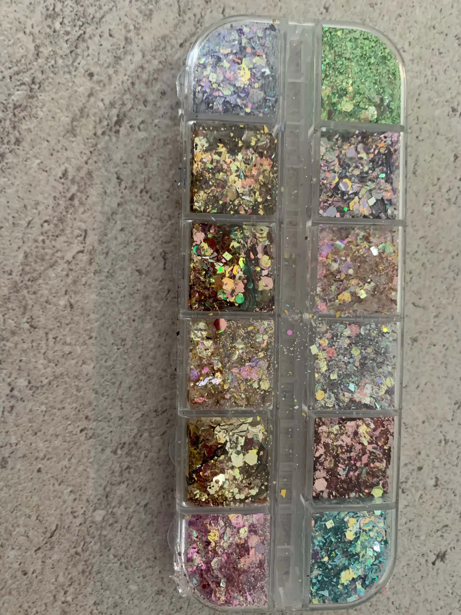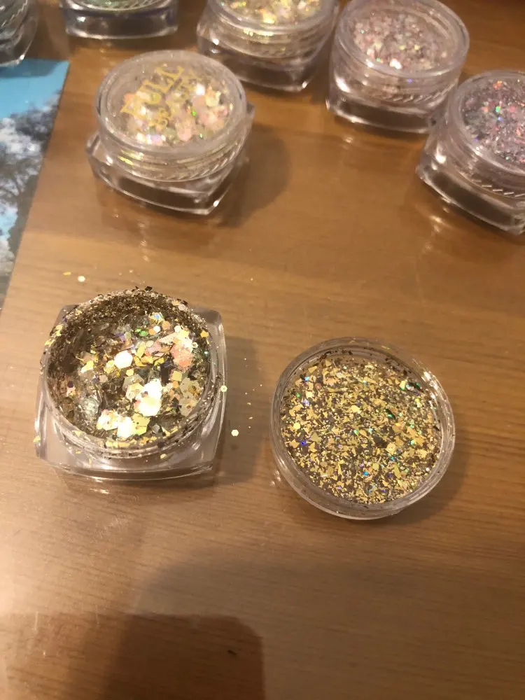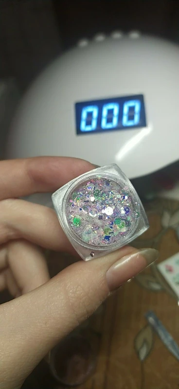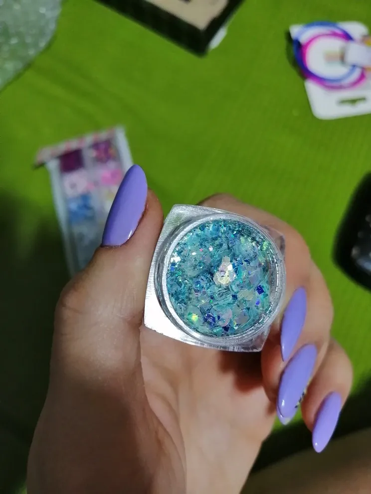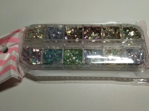 Два месяца доставка в Самару, пришли из Великобритании . Сами блестки красивые.
