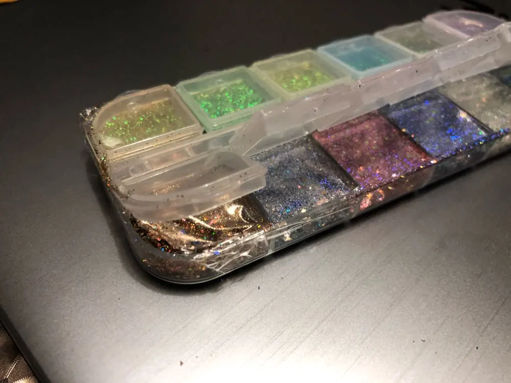 Товар йшов місяць, укрпоштою. Лоток дуже плотно закритий, настільки теромлядерно, що деякі я досі не можу відкрити. Наповнення приблизно половина, дуже багато великих блискіток, хотілось би більше менших, а так то все добре)