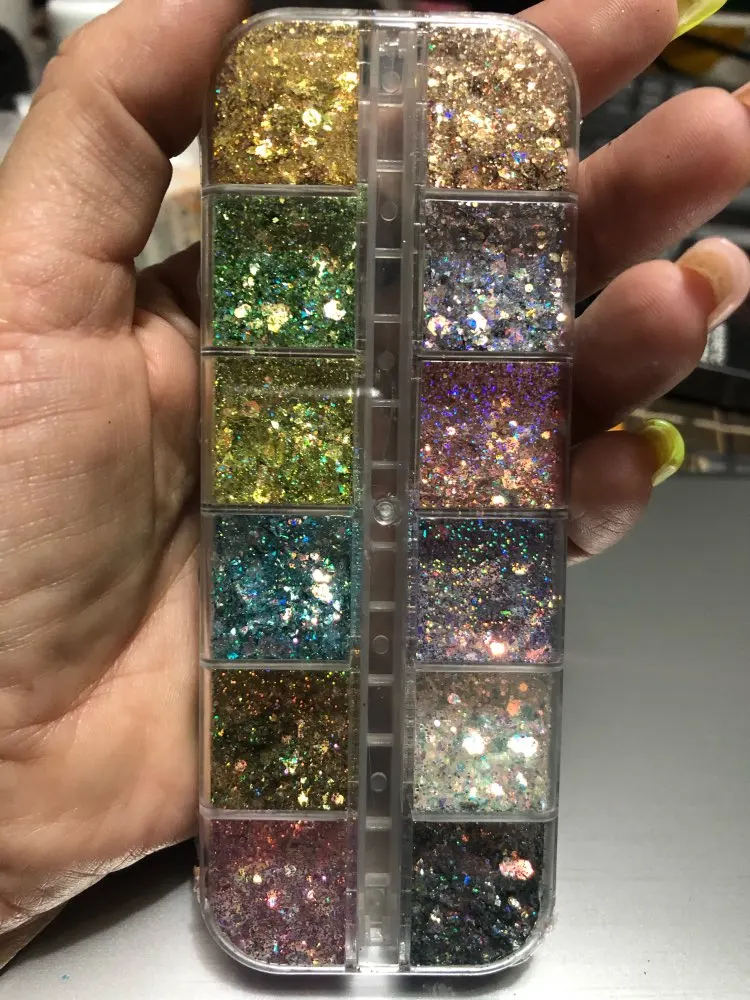 3D Блестки для ногтей, 1 коробка, блестящие хлопья, шестиугольные, разноцветные блестки, для маникюра, украшения для ногтей, TRDJ01-12