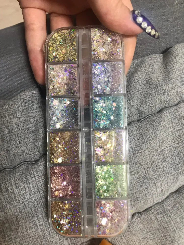 Ну наконецто дождалась прошла мне кажется целая вечность месяца два точно где-то они ехали ко мне но красивые зараза)))) В общем они в такой прикольной коробке отсеки дополнительно там пленочкой защитной заделанны чтоб ничего не высыпалась очень здорово это придумали сфотографировала вам как можно лучше чтобы было видно в общем я в восторге очень красивая фигня когда сделаю ногти обязательно выставлю вам на обозрение продавцу спасибо наполнение коробочки достаточно нормальное я всем очень довольна несмотря на долгую доставку