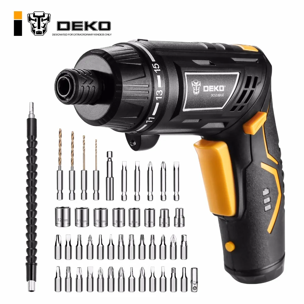 DEKO DCS3.6DU2-S2 Беспроводная электрическая отвертка, перезаряжаемая электрическая отвертка с регулируемой ручкой, беспроводной светодиодный фонарь, бытовая отвертка сделай сам