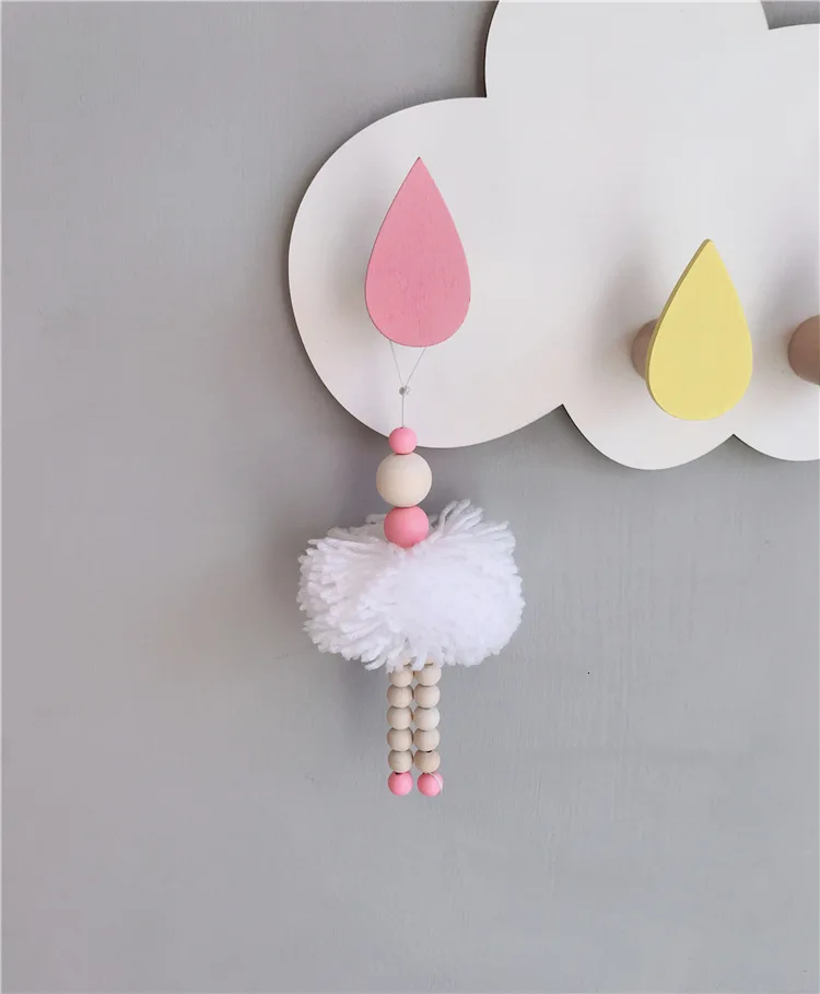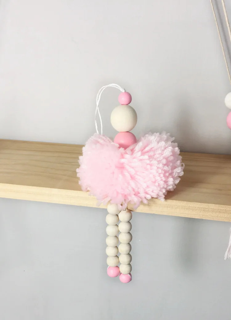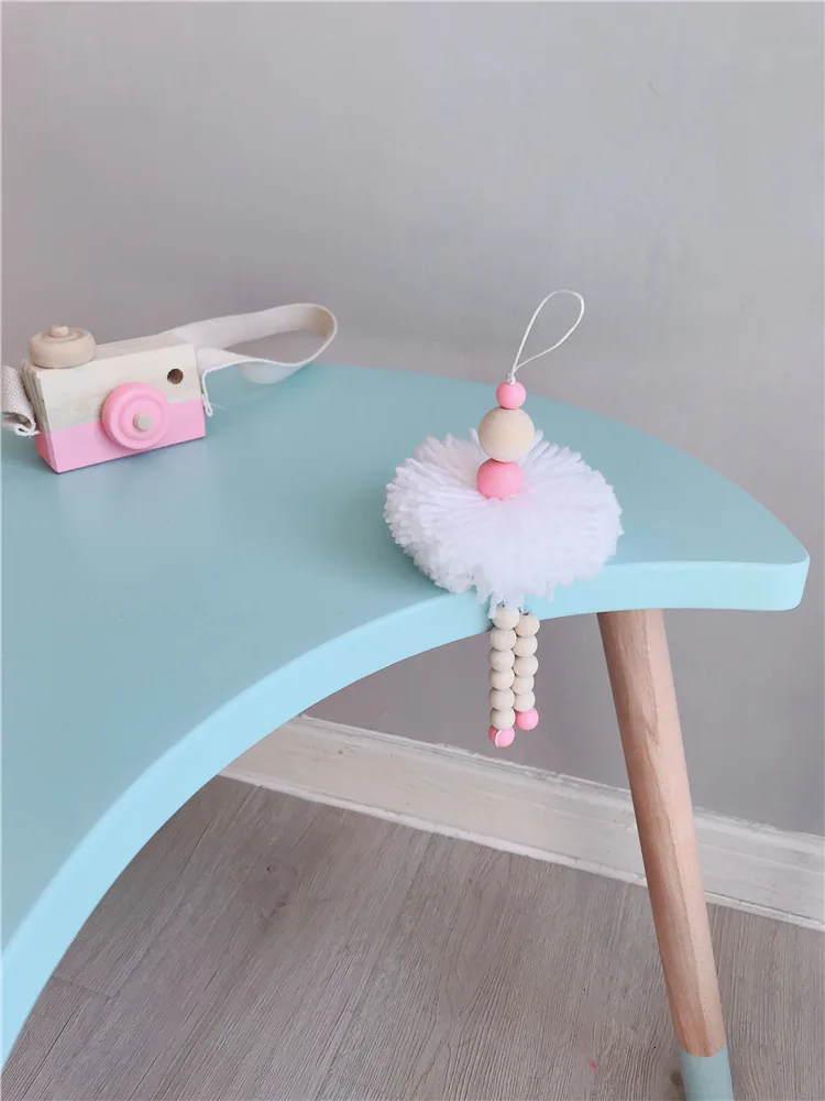 Деревянный колышек в скандинавском стиле для девочек, декор для комнаты, детская комната, Комната принцессы, помпон, феи, деревянные бусины, розовые украшения, реквизит для фотосессии для девочек
