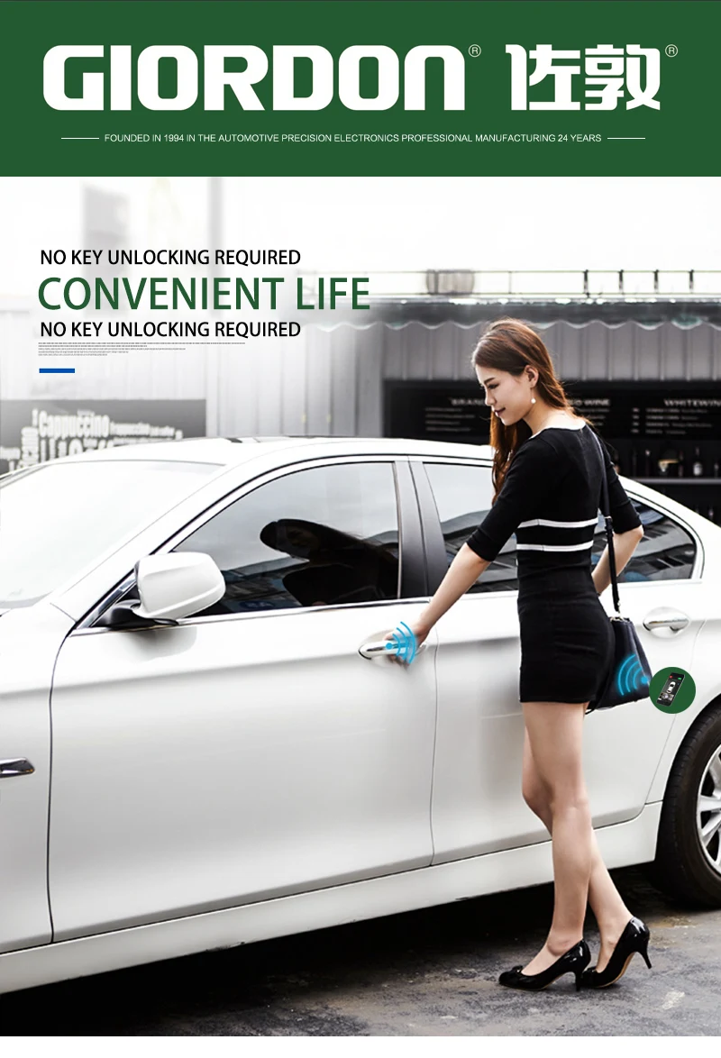 Автомобиль с сенсорным управлением смартфоном (Используйте приложение) подходит к автомобилю для разблокировки, оставляет замок и выводит оригинальный гудок
