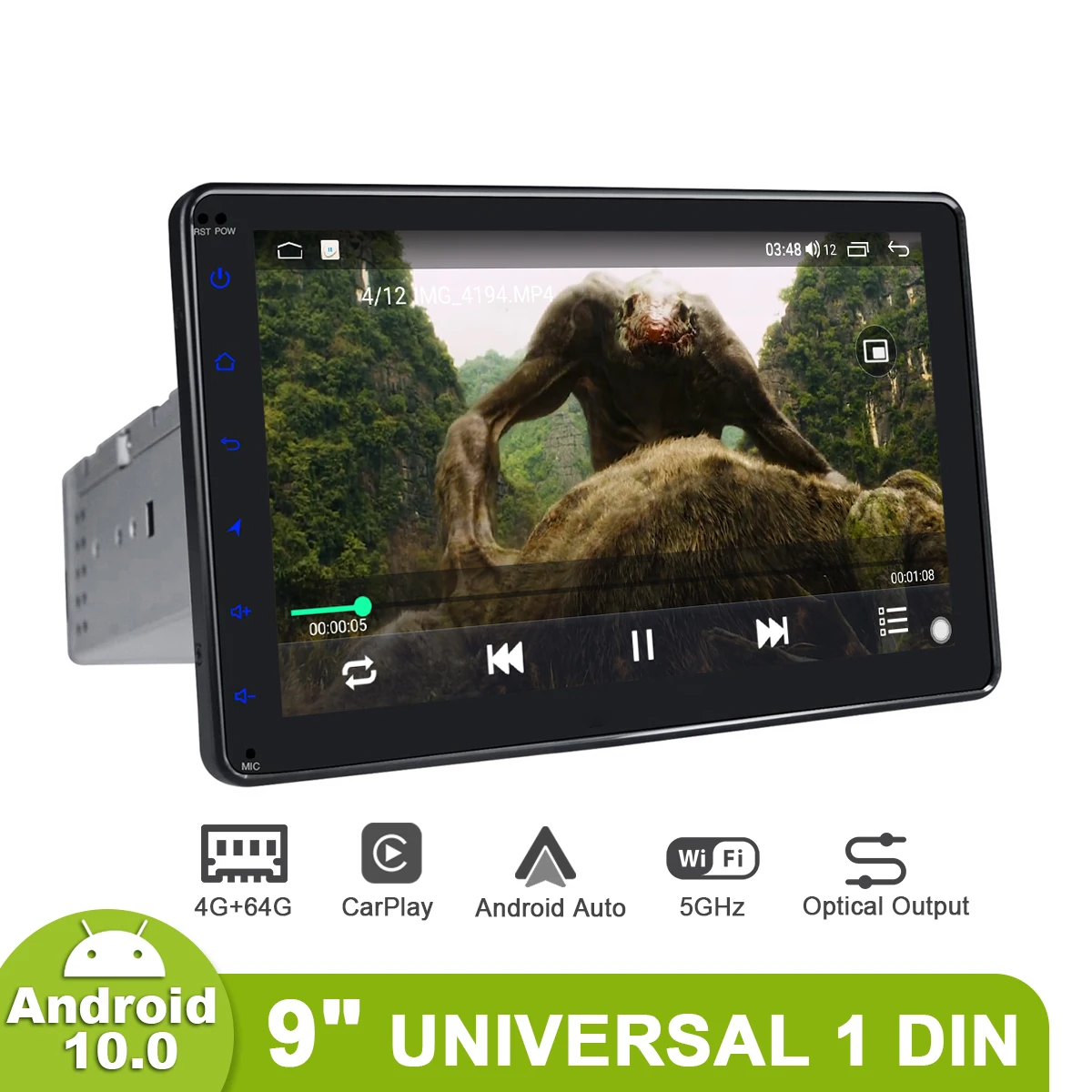 Головное устройство, 9 дюймов, 1din, 4 Гб ОЗУ + 64 Гб ОЗУ, Android 10,0, автомобильный радиоплеер, универсальная Автомагнитола 1280*720 IPS с модулем 4G, Carplay, Wi-Fi