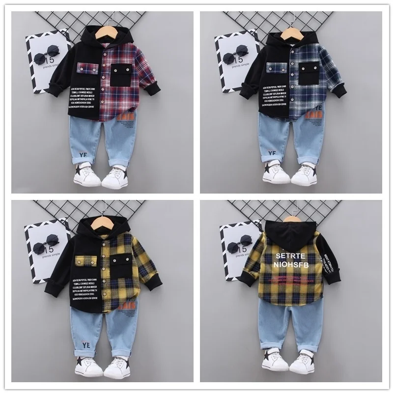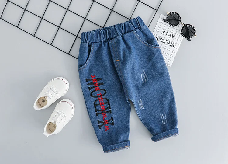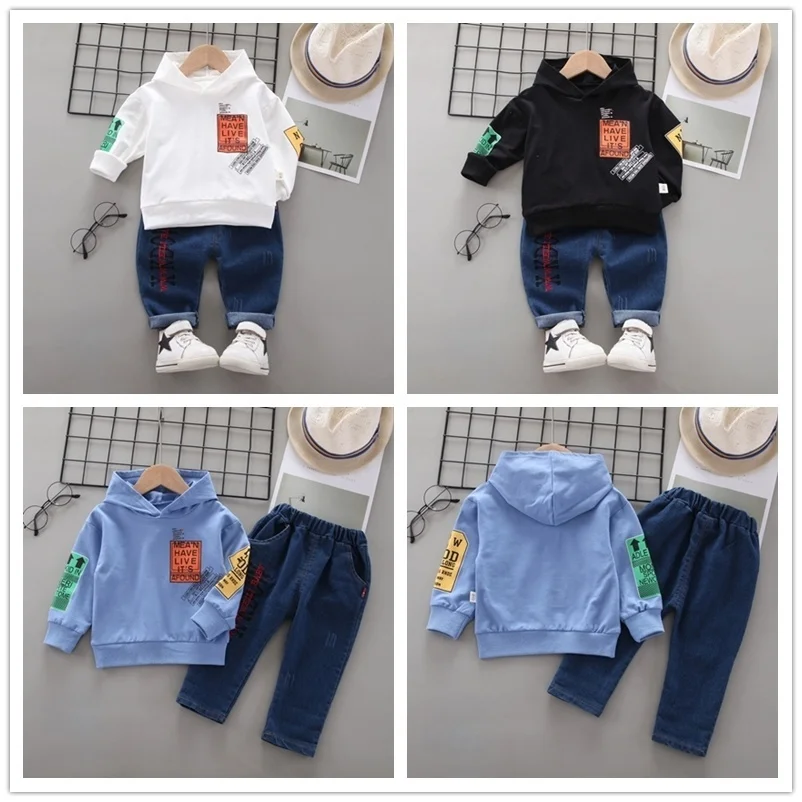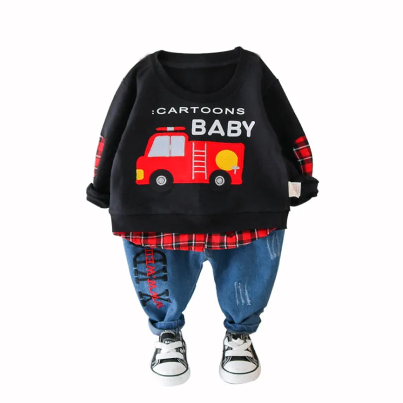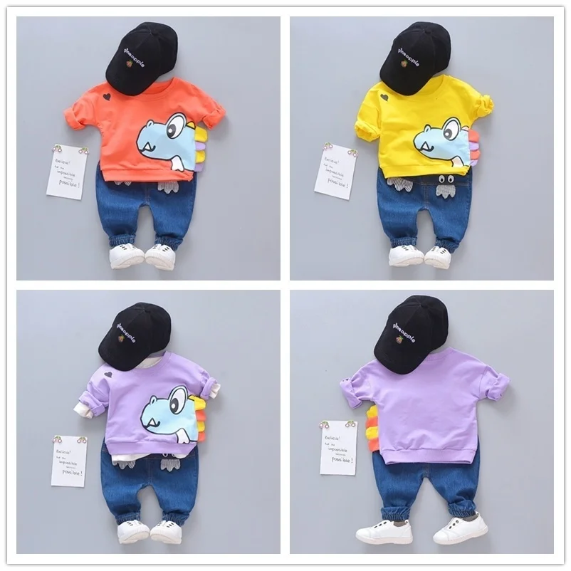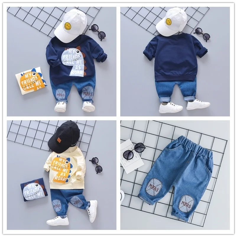 Новый весенний комплект одежды для маленьких мальчиков, комплект повседневной одежды для девочек, детская футболка с принтом из мультфильма и джинсы; 2 комплекта в шт.компл. хлопковые колготки для младенцев; Модная детская одежда; Спортивные костюмы