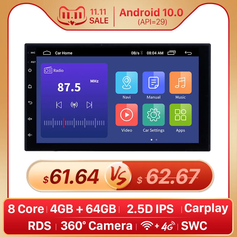 Seicane Android 10,0 7-дюймовый 2Din автомобильный радиоприемник Wifi Bluetooth четырехъядерный мультимедийный плеер для TOYOTA Nissan Kia RAV4 FJ CRUISER ALPHARD