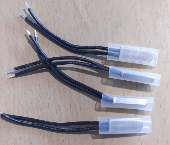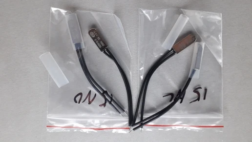 Данные термовыключатели брал на 65 градусов. При тесте выяснилось, что срабатывает на 75-80 градусов, возврат в исходное состояние 40-43 градуса. Температура срабатывания мне не подошла, посколько брал для переделанных блоков питания. Но в целом устройства работают хорошо и я их использую по другому назначению, а также выпишу дополнительно на 55 градусов. При тесте выяснилось, что замена силиконового чехла на термоусадку даёт отрицательный результат (на 3-7 градусов дополнительной погрешности). Так что используйте родной чехол.