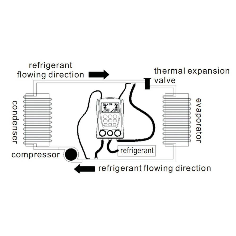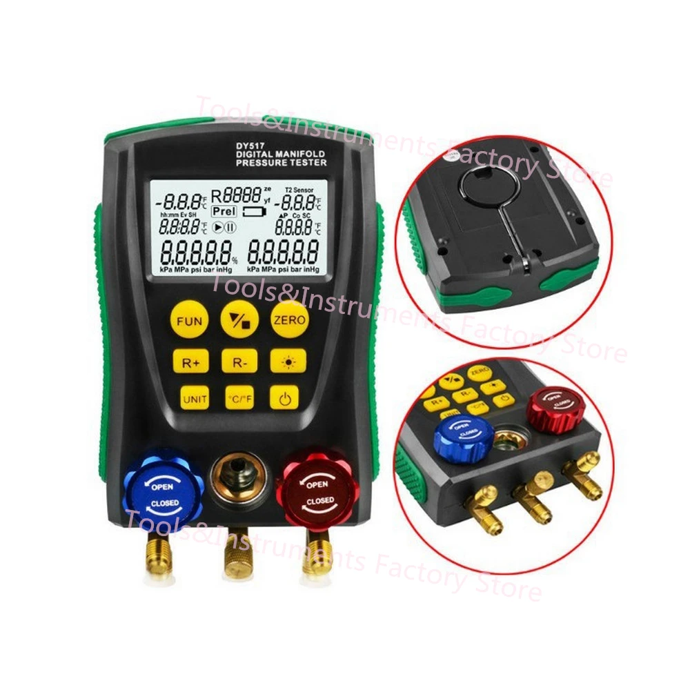 Прибор может измерять двойное давление (манометровое давление) одновременно, а также двойное измерение температуры (требуется тестовый зажим, не входит в комплект), с автоматическим многоблочным преобразованием давления, автоматическое преобразование температуры Цельсия/Фаренгейта для удовлетворения различных потребностей. Встроенная база данных о температуре испарения давления хладагента 89 видов, также рассчитывает переохлаждающий супернагрев для облегчения прямого считывания данных рабочих процессов. Также он тестирует процент вакуумного измерения; Измерение утечки давления, Запись скорости утечки. Заслуживает того, что этот многофункциональный, точный и просто управляемый цифровой коллектор позволит вам хорошо работать.