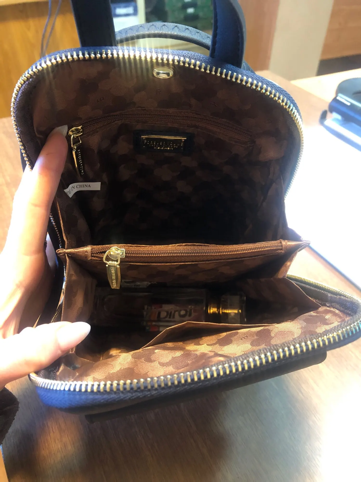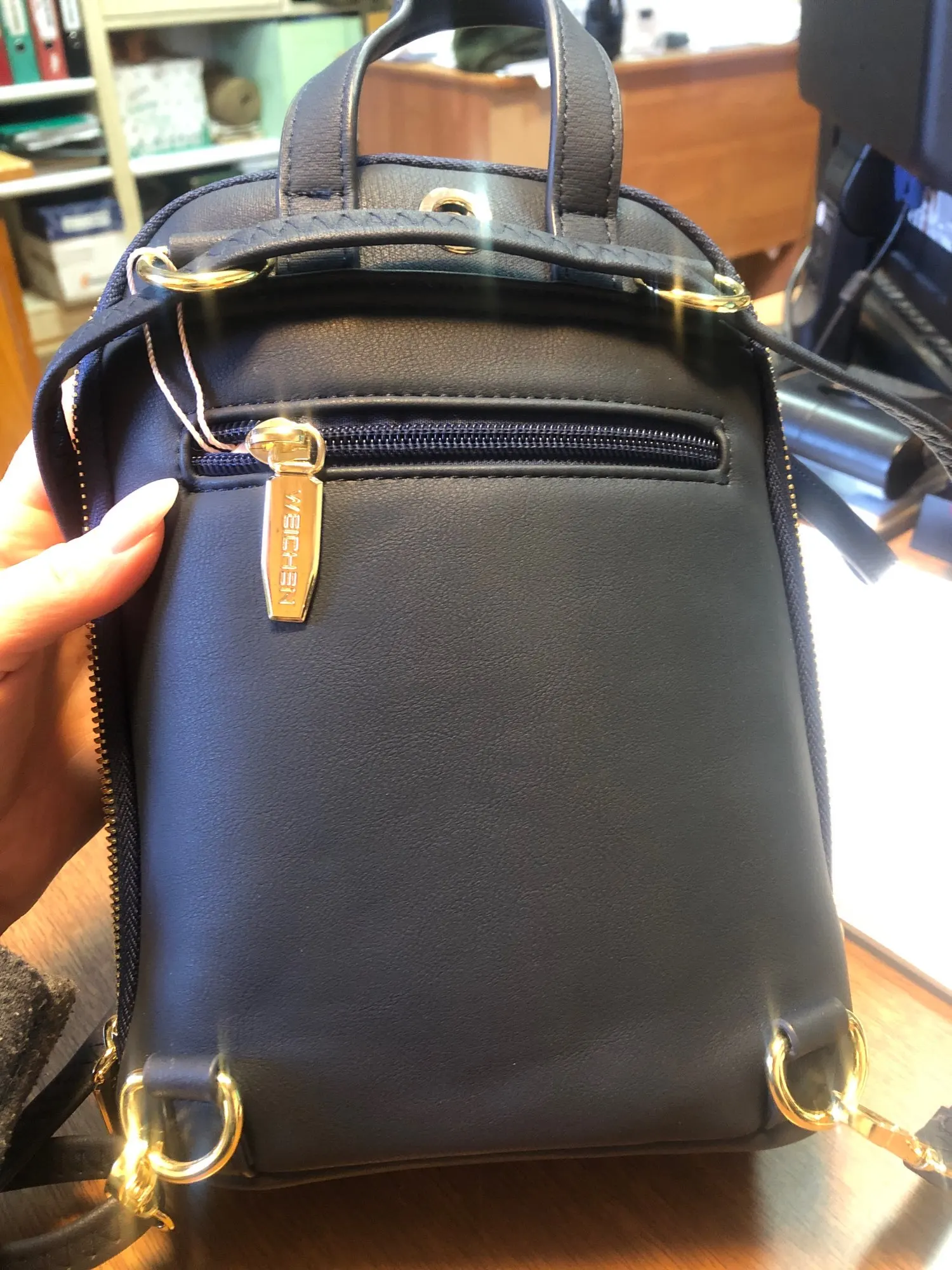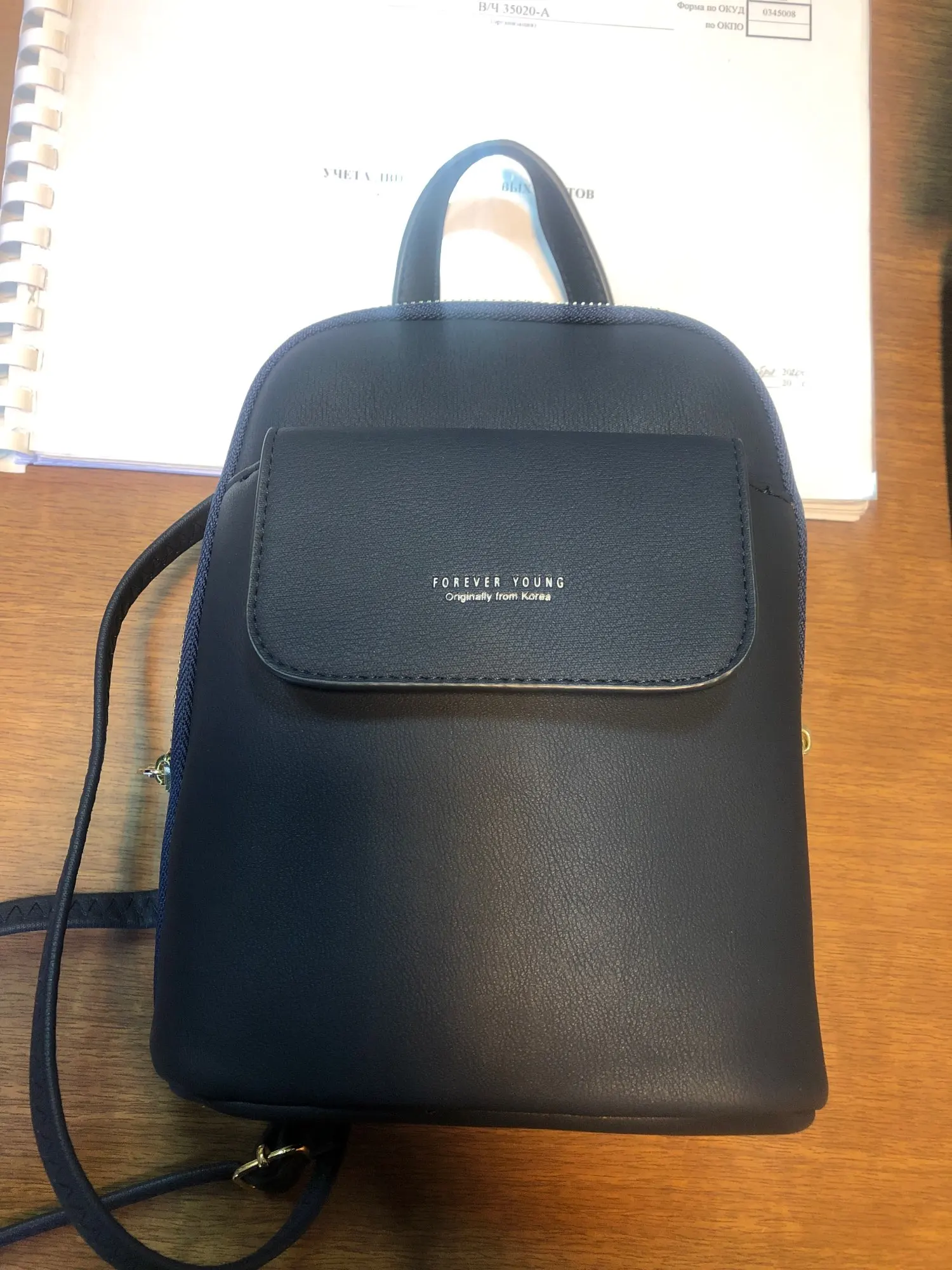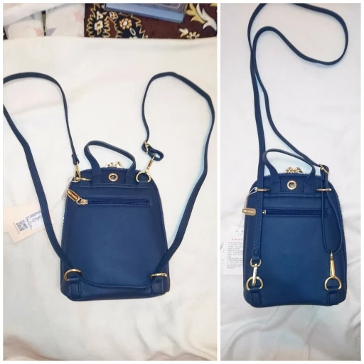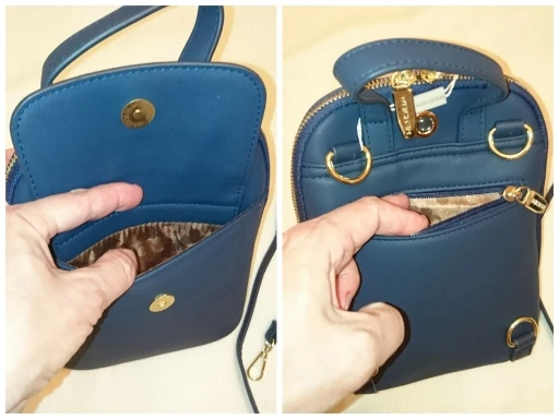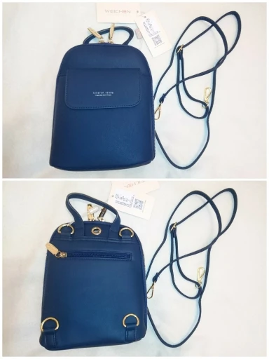 в общей сложности: это третья сумка у меня (первую выиграла в халяву, понравилось качество, и с нее и началось...) и шестая в семье (еще 3 у дочки). качество нравится. не знаю, что за материал, но ноский, одной из сумок уже два года, а вид новой, еще две поясные носятся постоянно уже месяца три, потерностей нет, молнии исправны. искала как раз маленький рюкзачок, который можно носить и как сумочку. это как раз такой вариант: можно как рюкзачок, можно через плечо, можно по диагонали через плечо, можно за ручку-петлю в руке. книжка формата pocket book и мини-зонт в 4 сложения входят (книга стандартного формата и обычный складной зонт не помещаются). есть отверстие под наушники. много кармашков: 2 внешних, 3 внутренних. 2 отделения. молния растегивается до днища сумки. цвет темно-синий, почти черный (снимала под лампой и со вспышкой, поэтому кажется ярче и светлее). упаковка и доставка на 5+