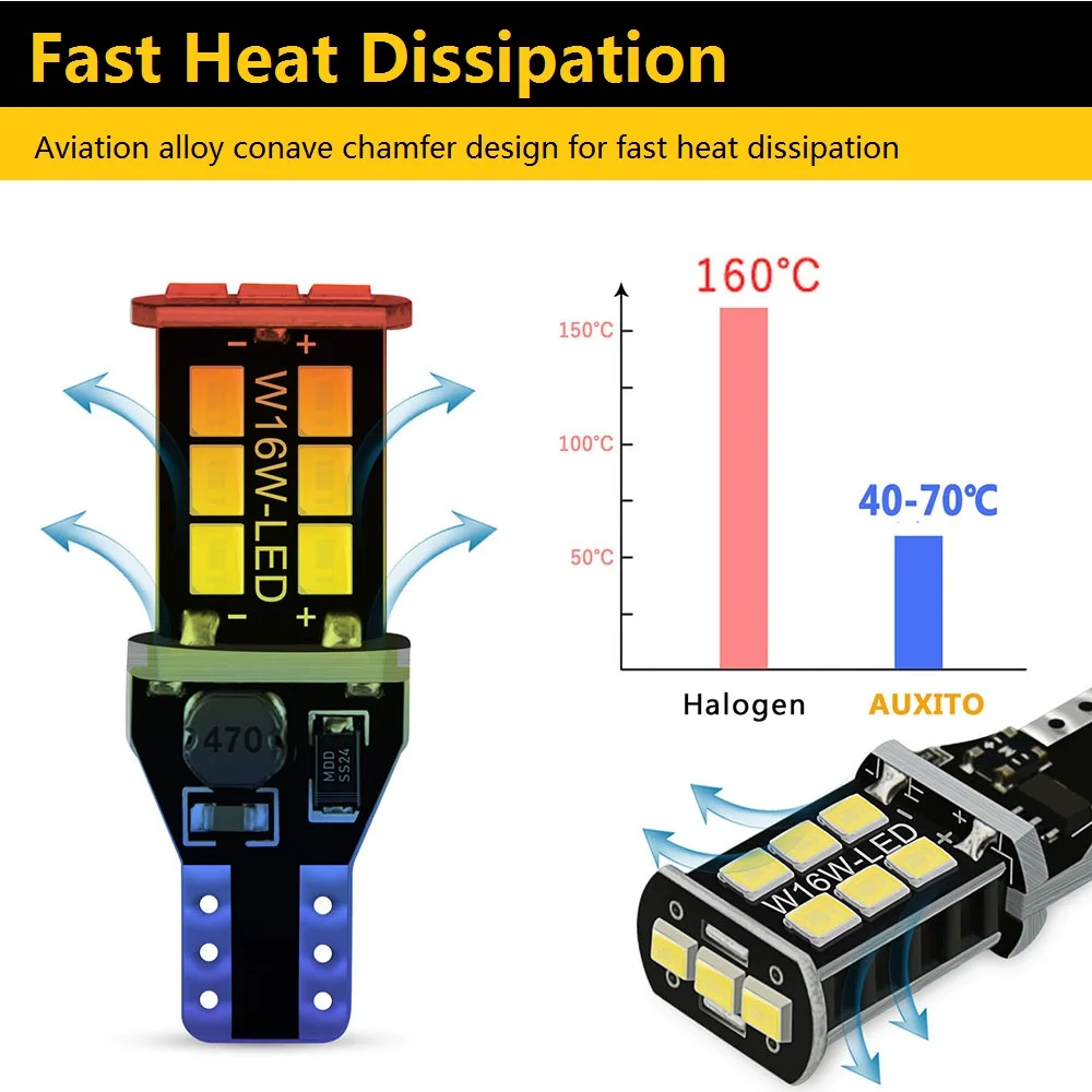 Светодиодные лампы AUXITO Canbus 921 T15 W16W, 2 шт., автомобильные фонари заднего хода для BMW E60 E90 E91 Ford Fiesta Fusion Focus Mazda 3 5 6