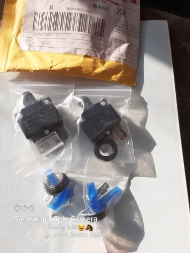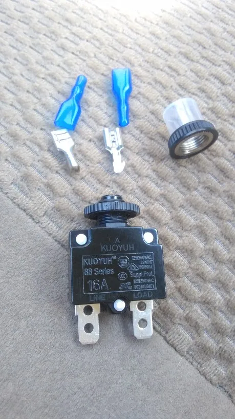 Пришло быстро. Колпачки силиконовые, так что возврат можно прямо через них делать. Внутри тепловой расцепитель с возвратом. Тот который на 3 А, срабатывал на 5.5 А через пять секунд. На 8 А быстрее.