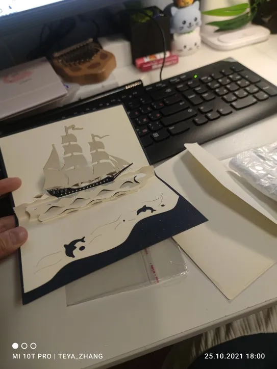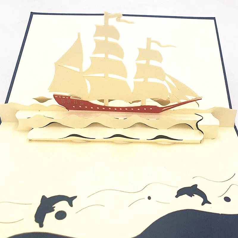 1 шт. ручная работа Гладкий парусный 3D всплывающая открытка, бумажная открытка, Детские приглашения на день рождения, вечерние открытки, деловой подарок